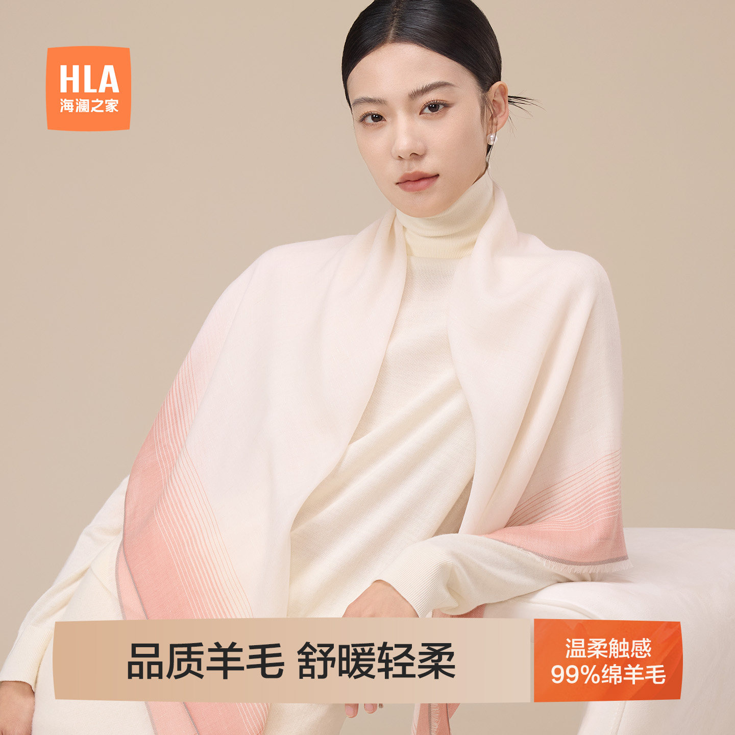 海澜之家女士披肩围巾优雅甜美秋季通勤保暖舒适礼盒装礼物送女友