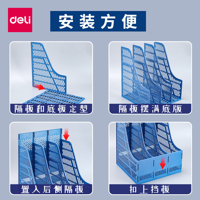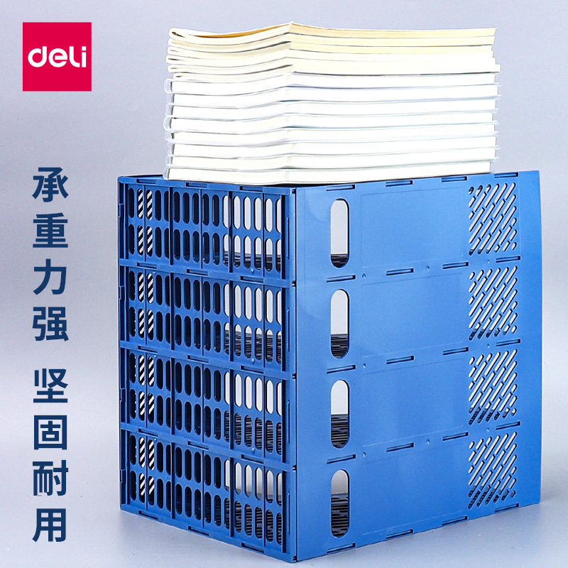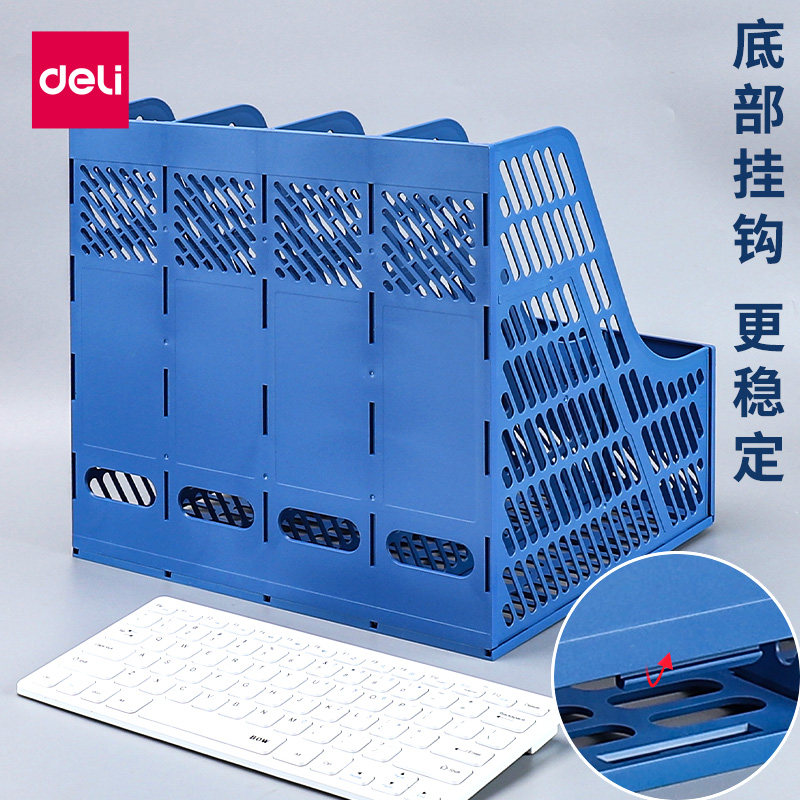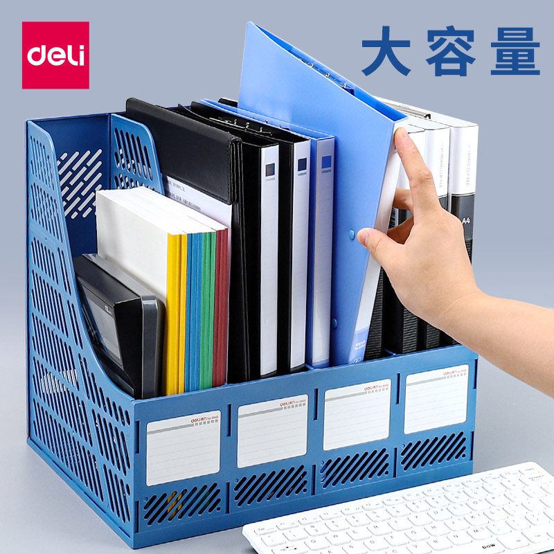 得力加厚文件架资料框收纳盒书立架办公用品档案筐文件夹子多层桌面塑料书架简易桌上文件框资料架黑色置物架