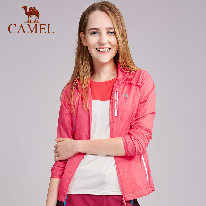 骆驼雪壳防晒衣粉色女冰感透气运动风衣外套户外夹克轻薄皮肤衣男