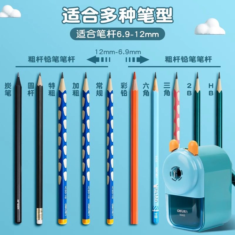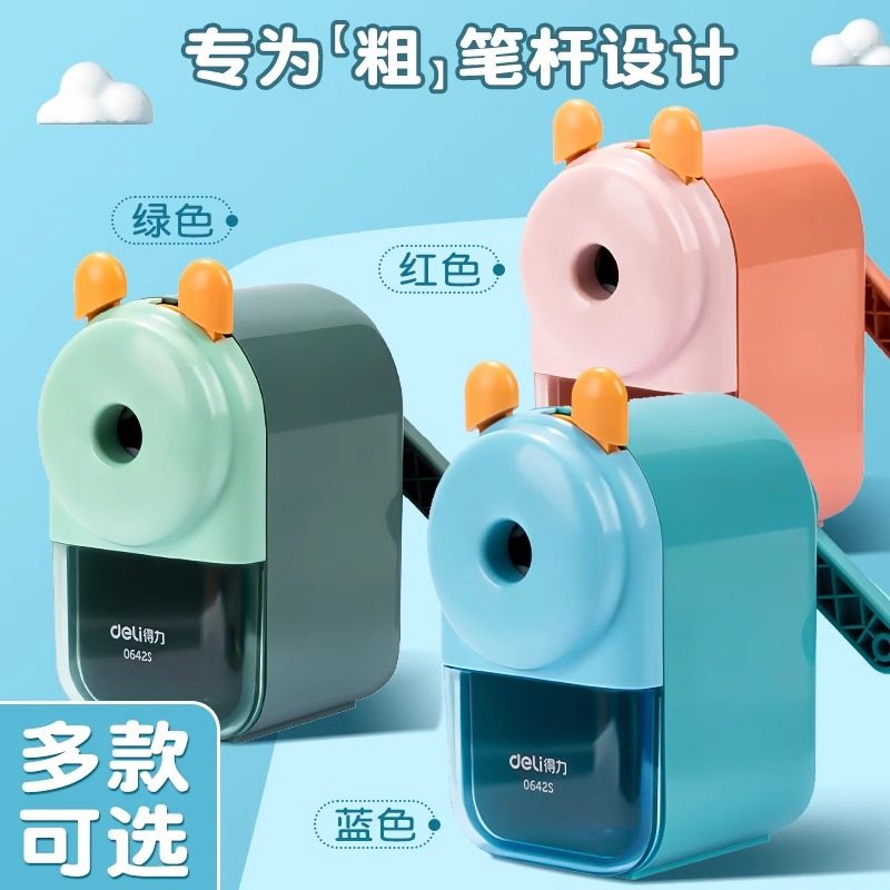 得力卷笔刀大口径手摇转笔刀小学生专用特粗洞洞笔加粗铅笔削笔器铅笔刀儿童粗杆美术生铅笔素描削笔刀削笔机