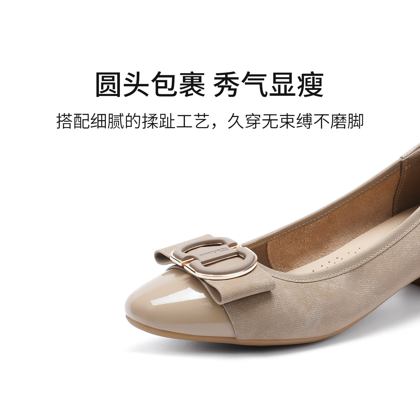 【明星同款|静音系列】千百度练习曲裸色高跟鞋真皮通勤法式单鞋