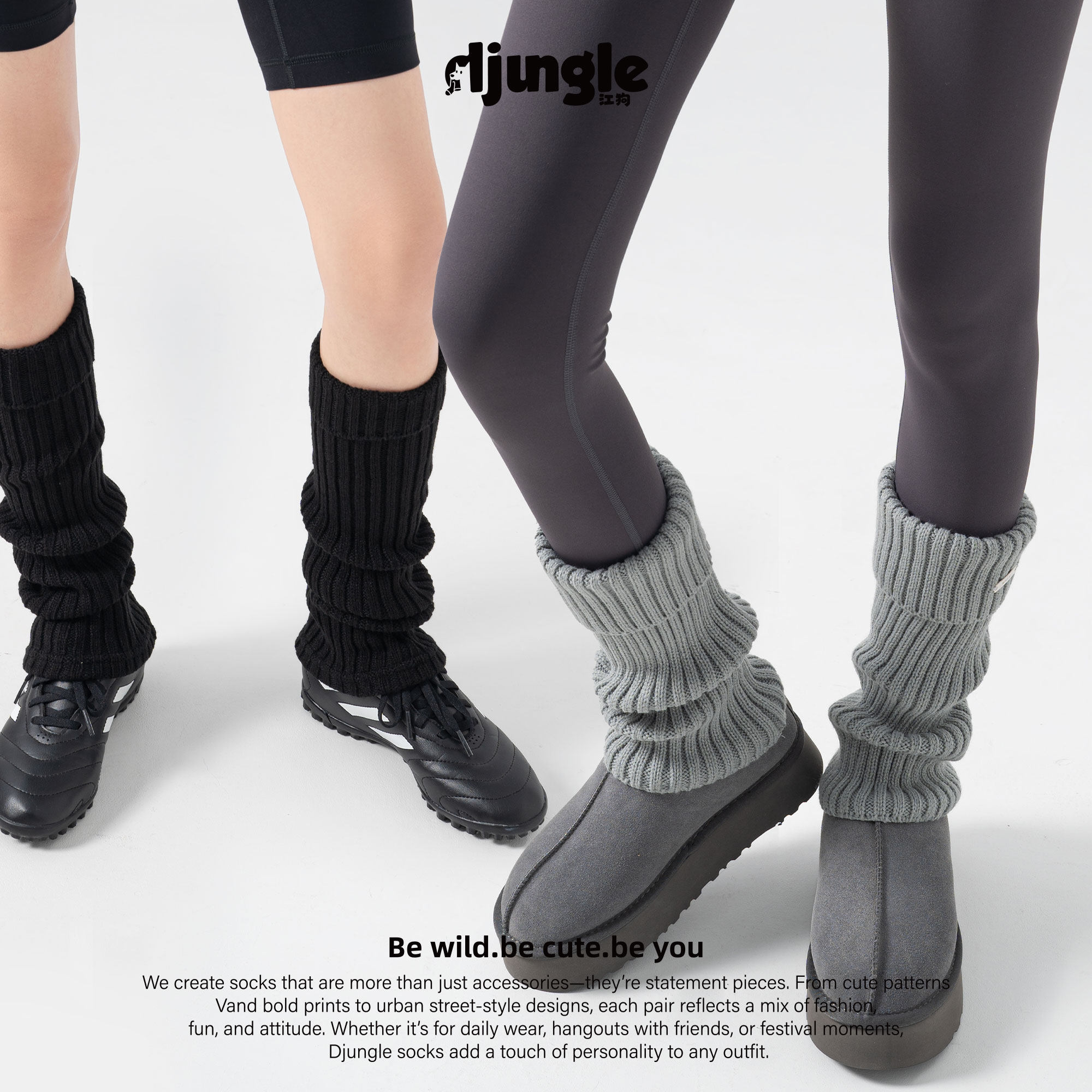 江狗针织堆堆袜套女中筒保暖长袜春秋款显瘦小腿袜腿套搭配小皮鞋