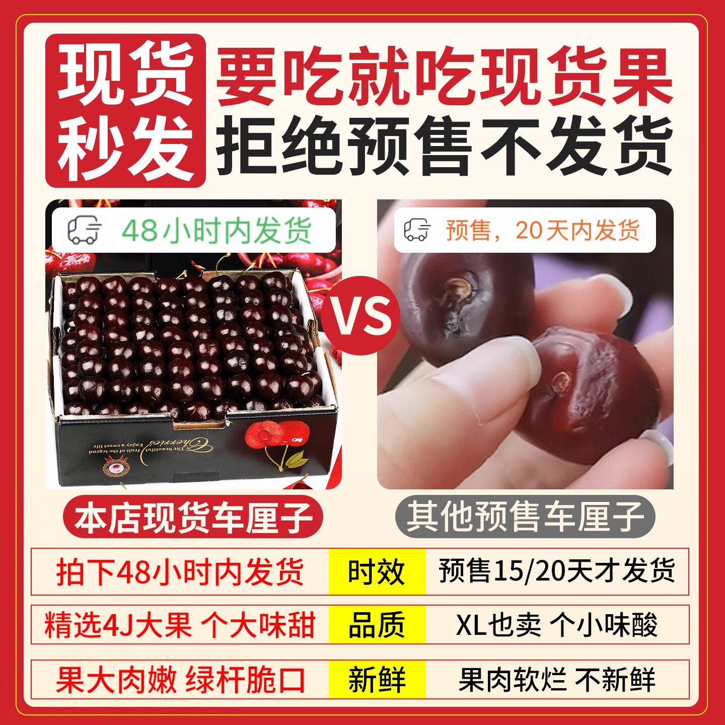5斤4J智利进口车厘子新鲜水果红黑大樱桃脆甜多汁整箱包邮