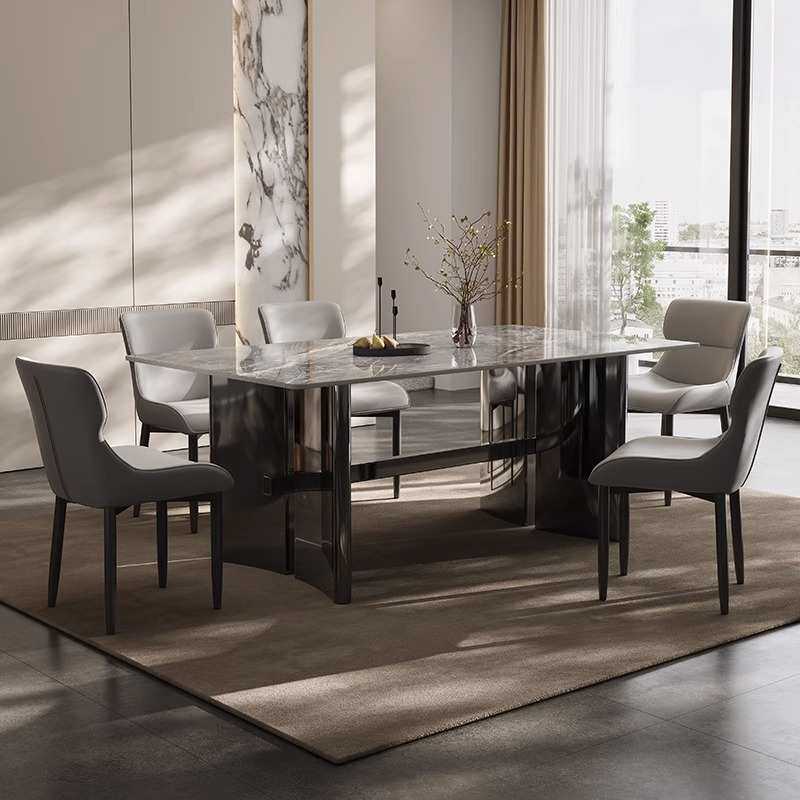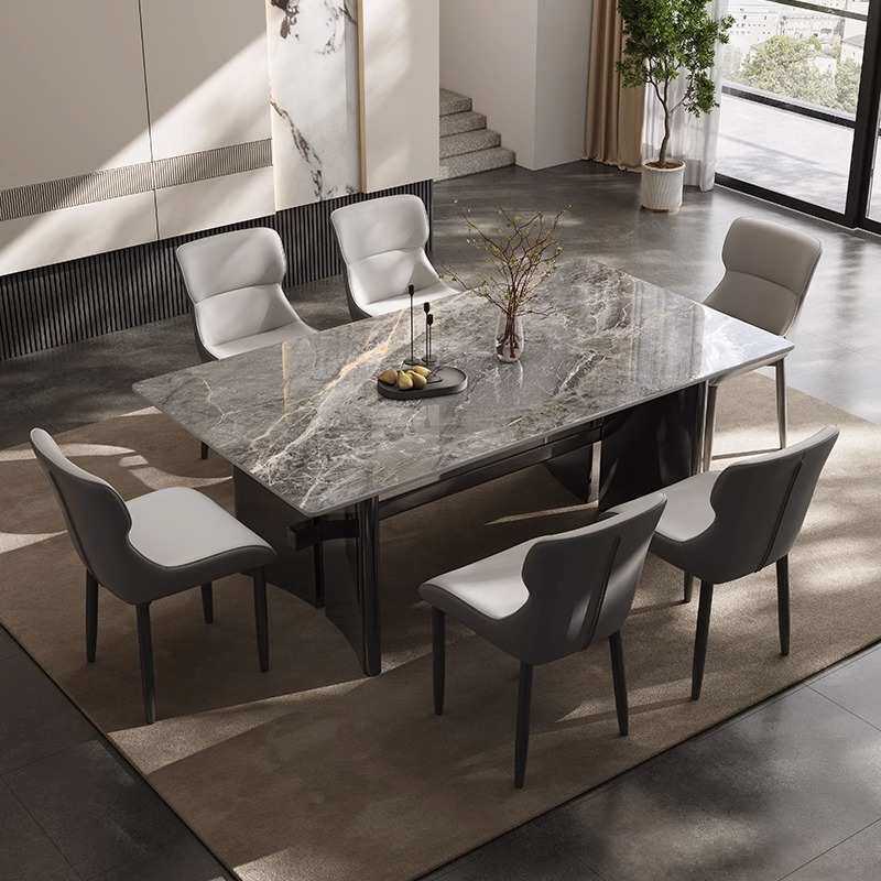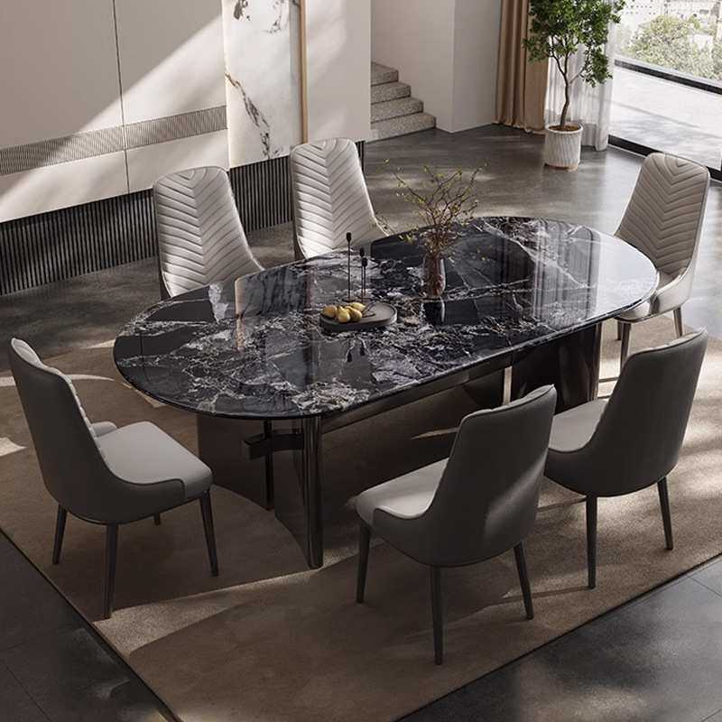 黑曜石超晶石餐桌天然微晶石轻奢现代简约长方形家用小户型大理石