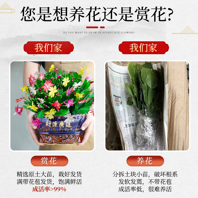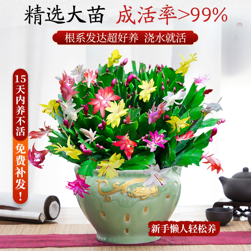 蟹爪兰盆栽带花苞多色花卉室内阳台绿植净化空气好养多季开花不断