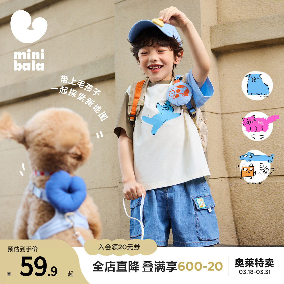【吸湿速干】迷你巴拉巴拉儿童凉感抑菌T恤夏季新款亲子轻薄短袖T