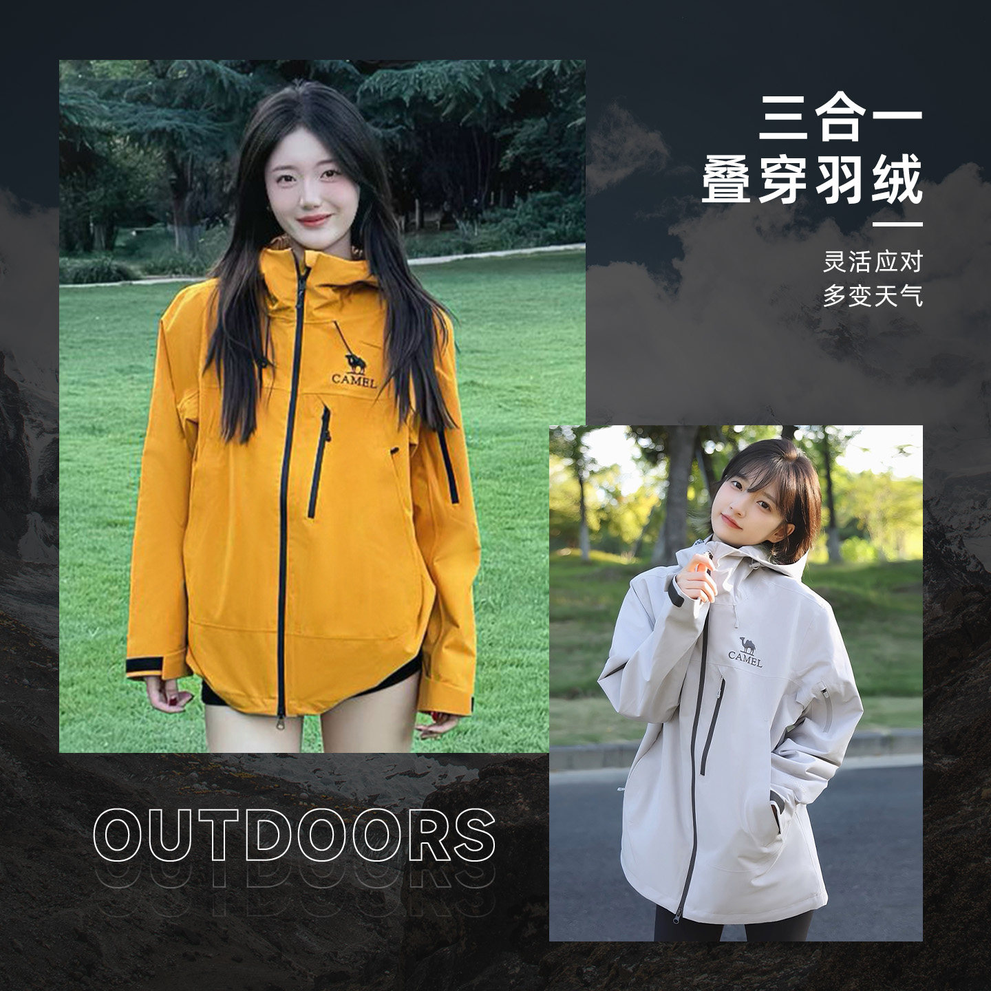骆驼户外冲锋衣女款25年三合一鹅绒内胆三防保暖羽绒登山服外套男