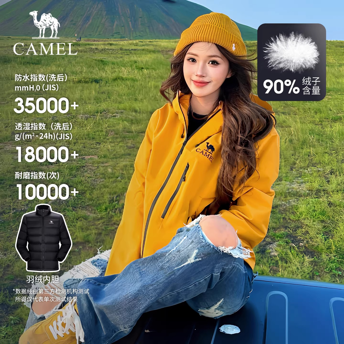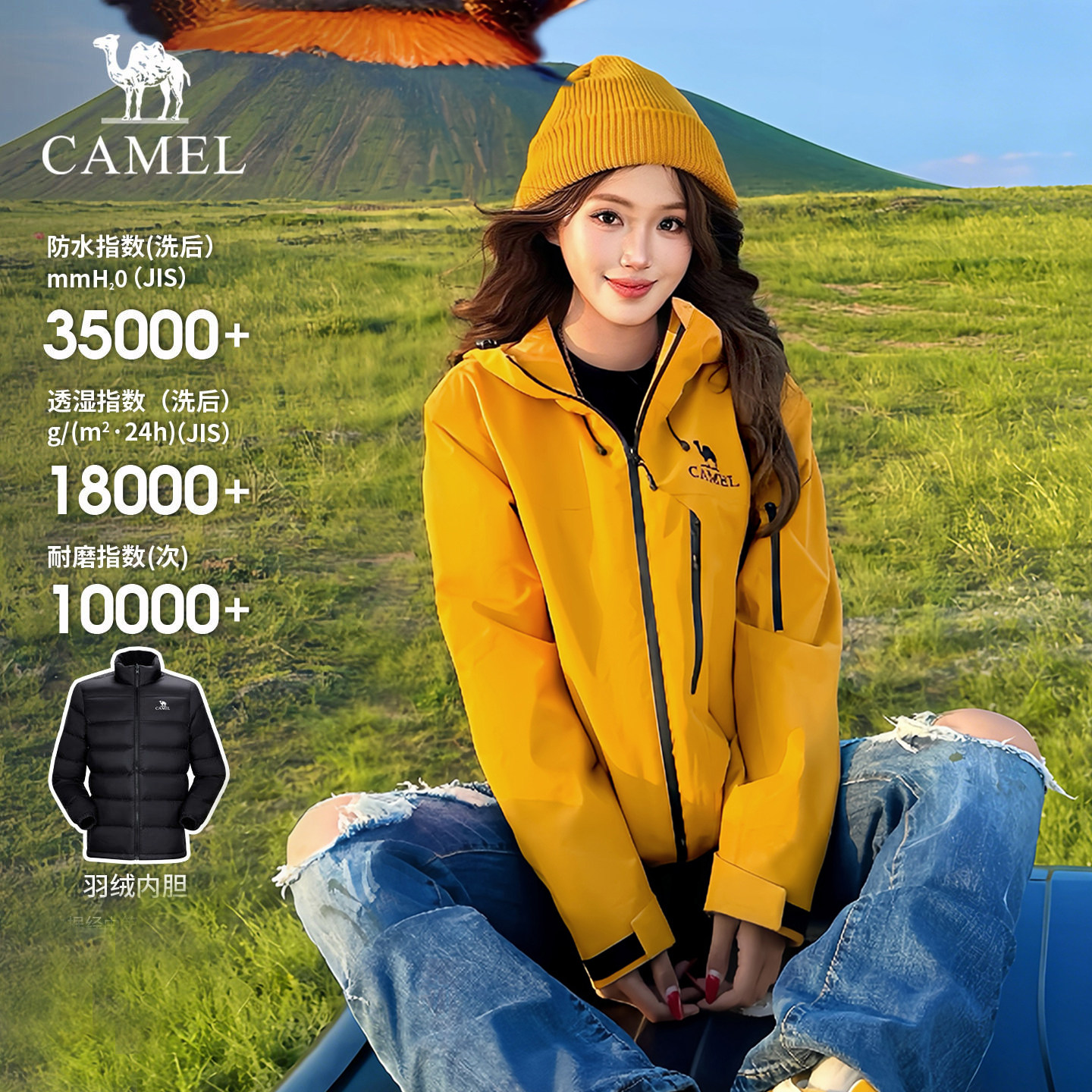 [羽绒版]骆驼雨神冲锋衣女士三合一秋冬加厚羽绒服防风保暖外套男