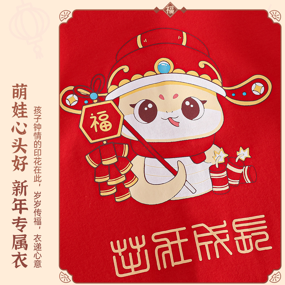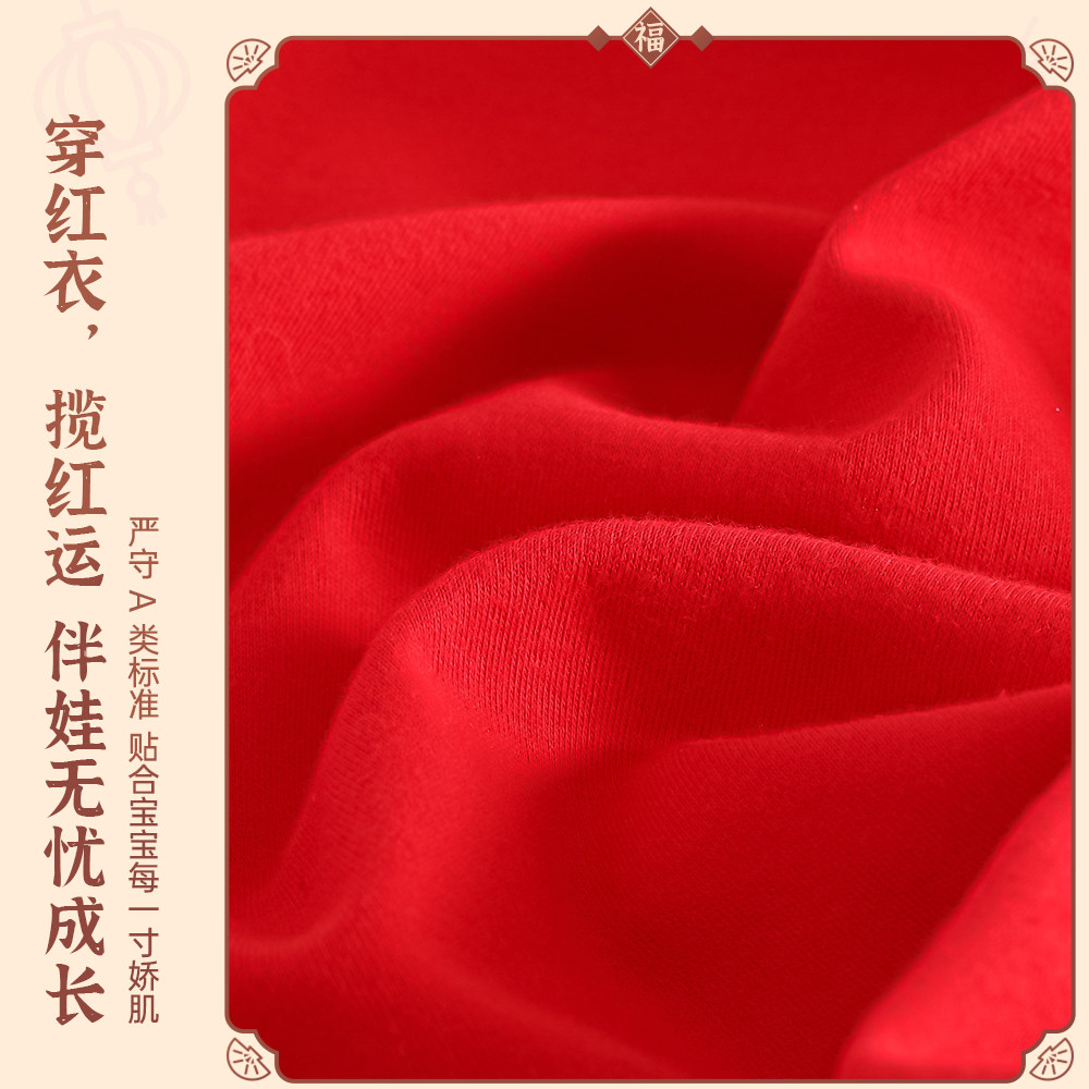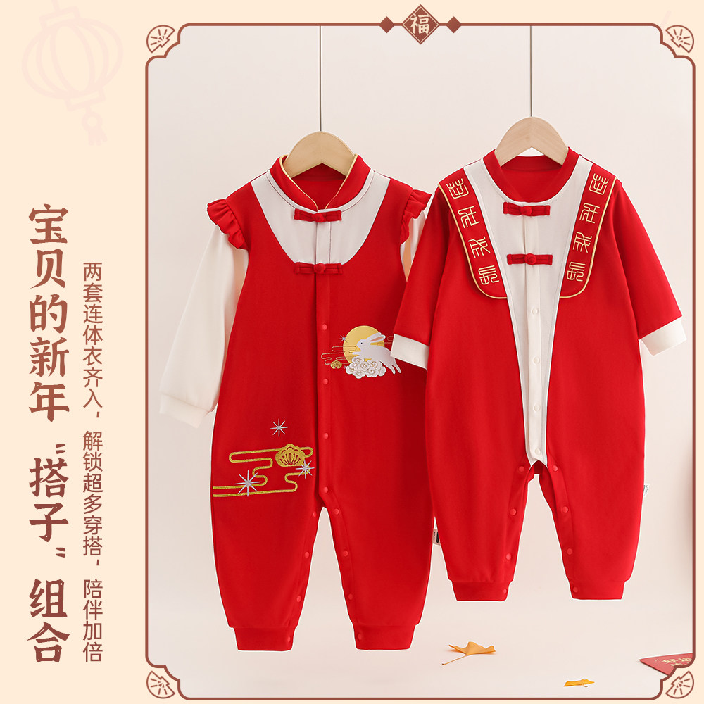 婧麒婴儿秋冬连体衣宝宝满月周岁红色喜庆衣服新生儿过年服爬爬服