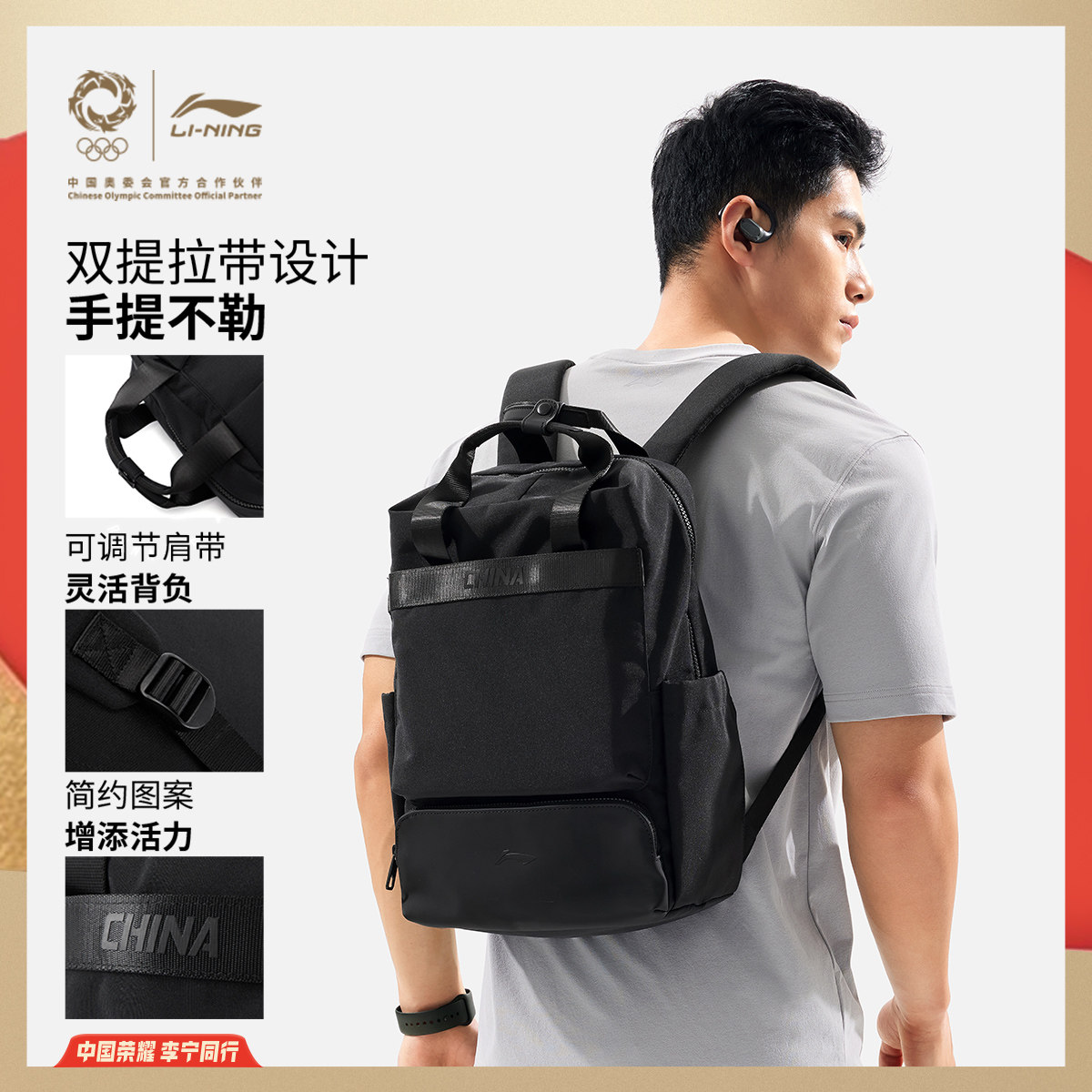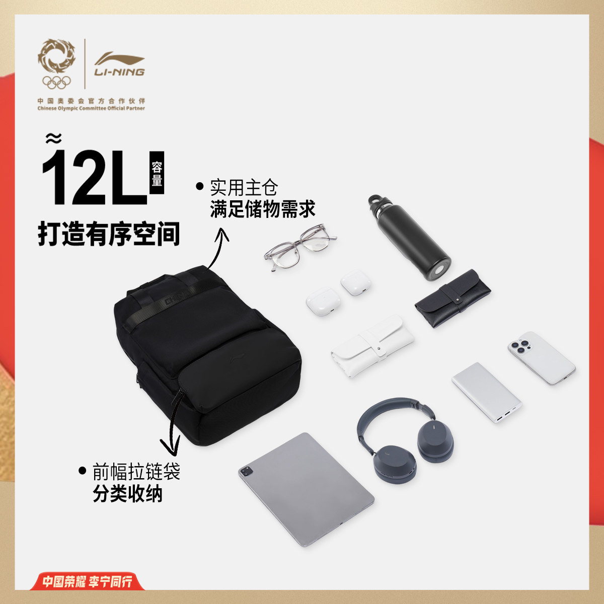 李宁荣耀系列双肩包男包女包官方正品2026新款背包书包学生动包