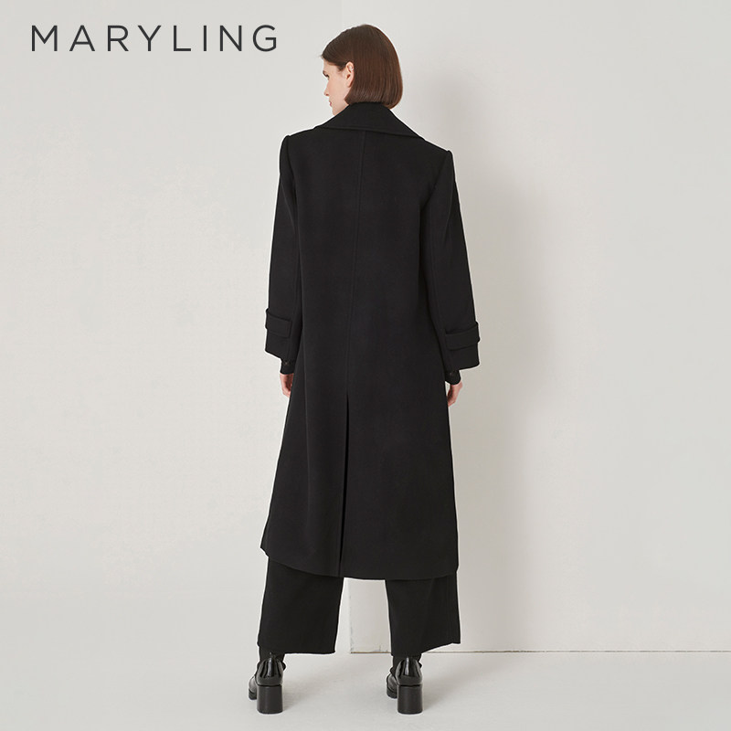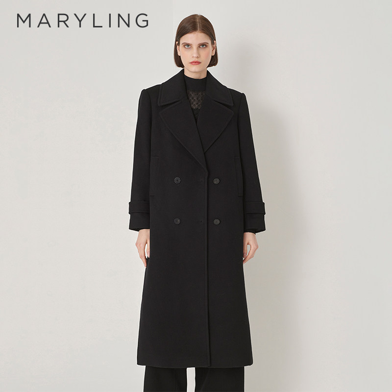 MARYLING玛俪琳冬季新品宽肩双排扣长款毛呢大衣A1DHW93470