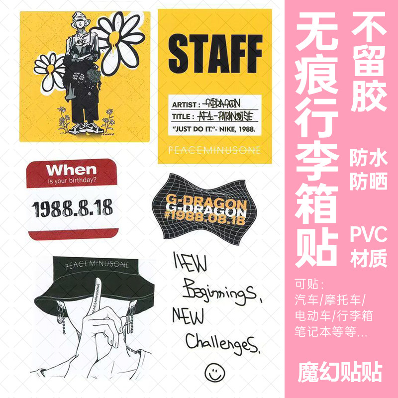 权志龙GD小雏菊行李箱贴纸防水不留胶旅行箱拉杆箱防水潮牌小贴画