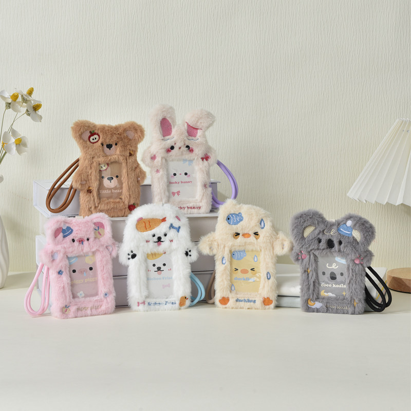 优和可爱动物系列毛绒卡套萌宠系列卡通学生卡门禁卡工牌公交证件校园接送卡保护套追星包包挂件书包挂饰7169