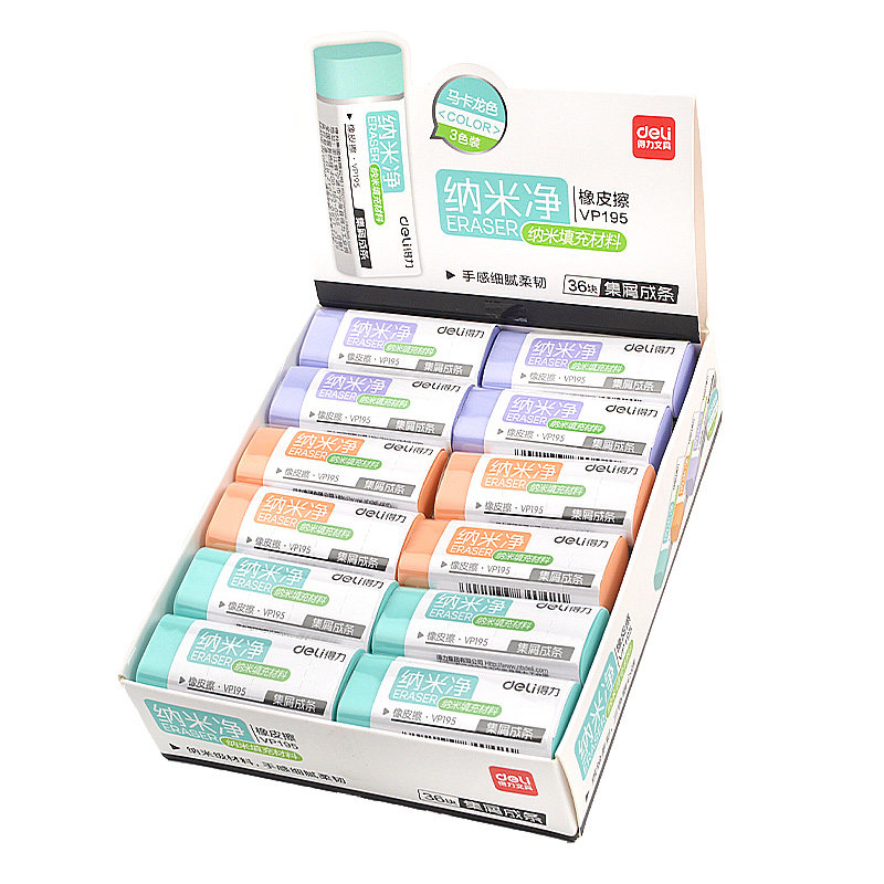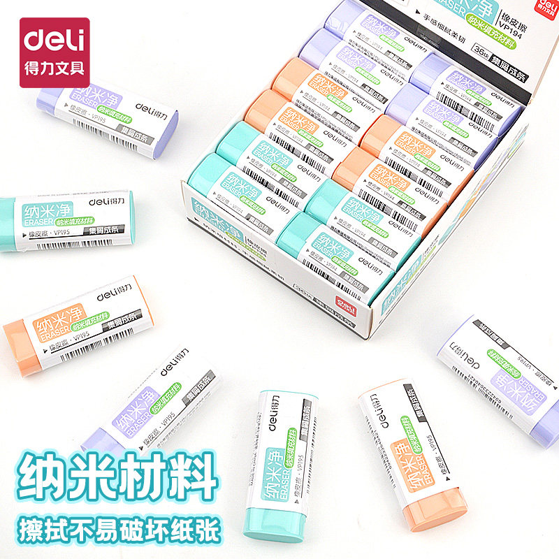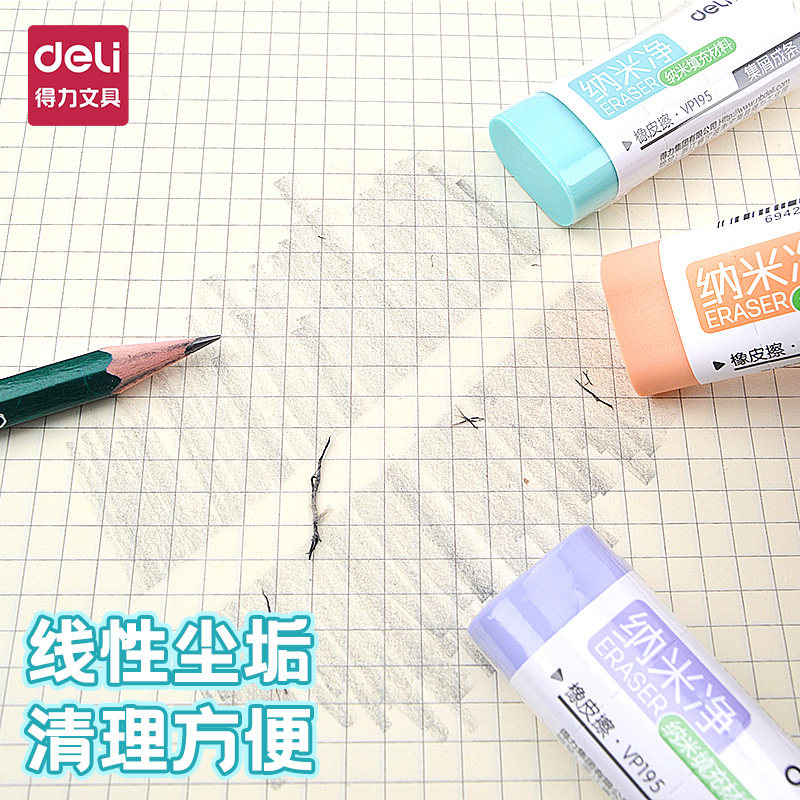 得力纳米净橡皮擦干净无痕小学生用集屑成条无碎屑糖果色橡皮儿童