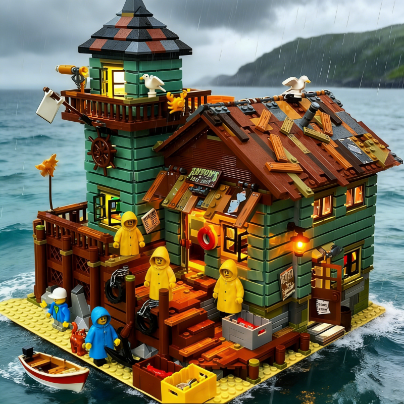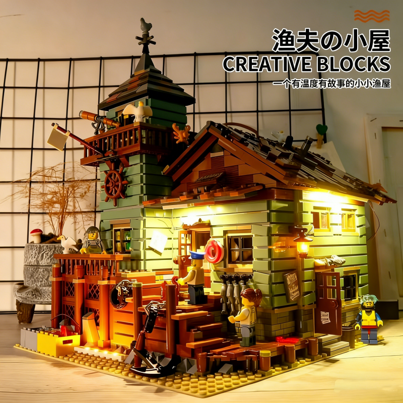 兼容乐高别墅渔夫小屋积木建筑街景房子模型高难度益智拼装玩具男