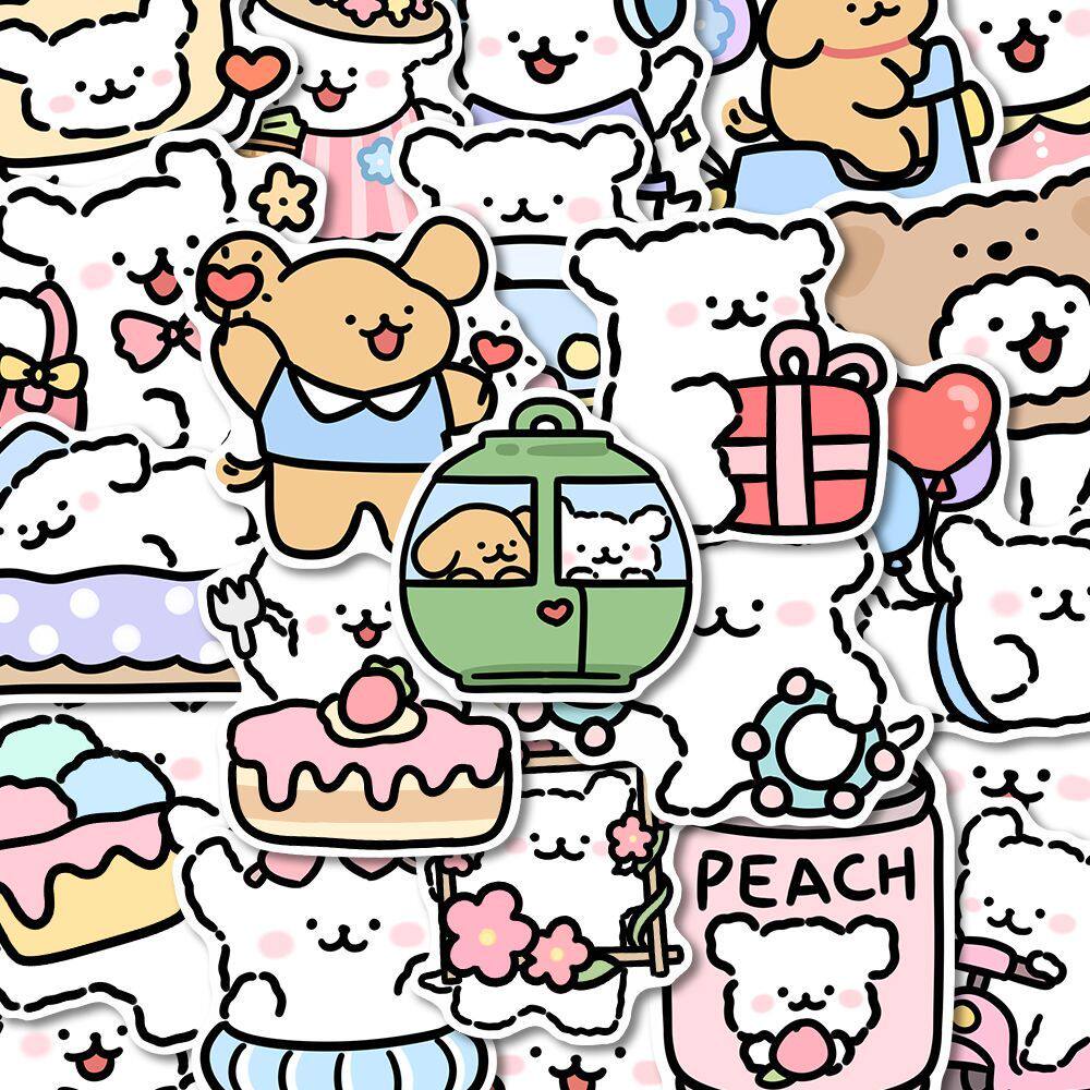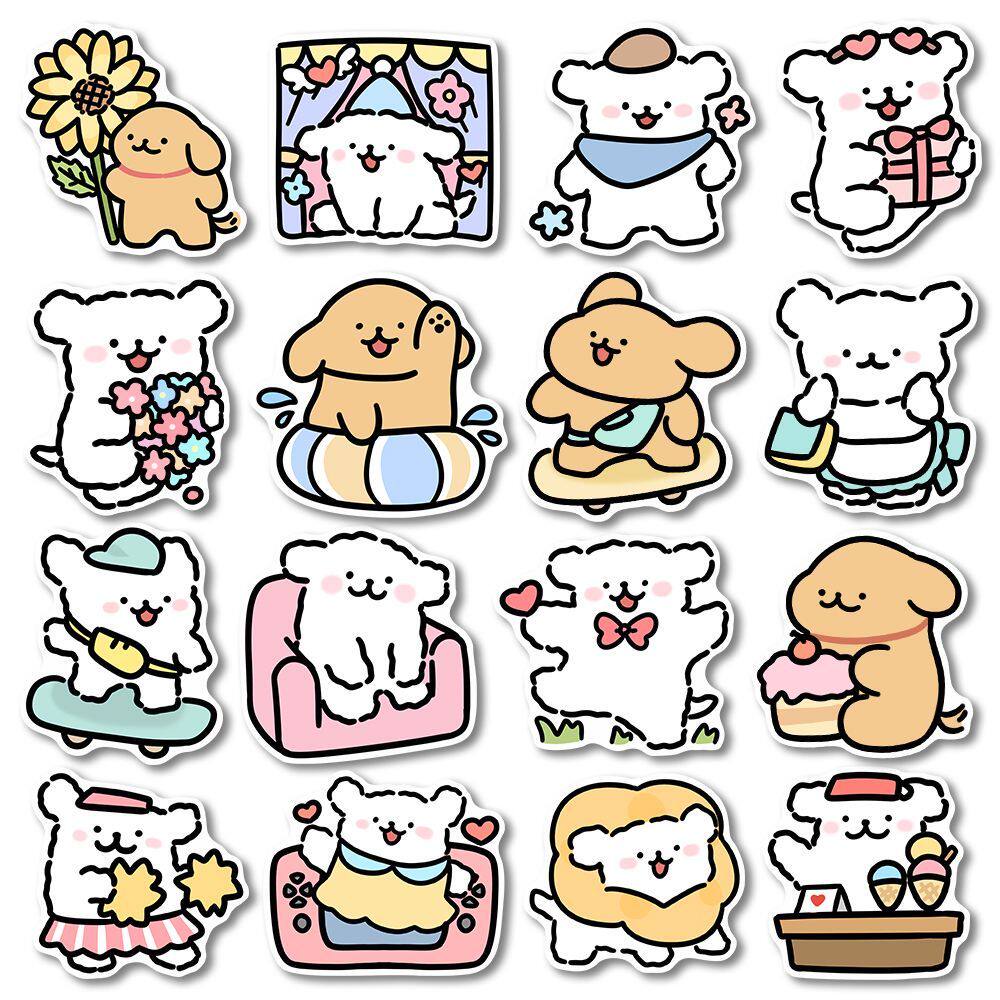 100张可爱线条小狗超萌卡通贴纸高颜值动物手账儿童diy手机壳粘贴行李箱头盔