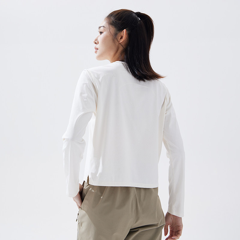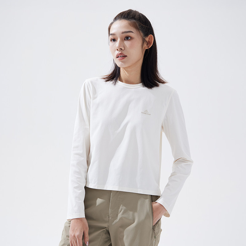 拓路者秋季长袖速干t恤女纯色短款圆领透气棉感小个子打底体恤衫