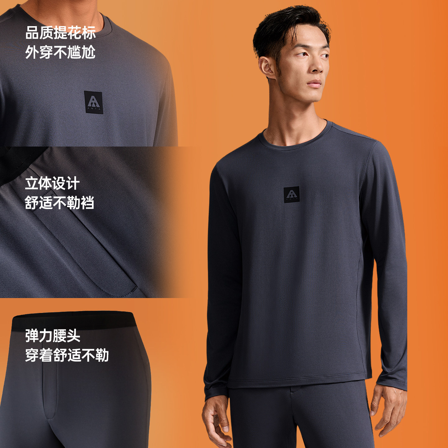 安踏加绒保暖内衣套装男士2025冬季新款无痕打底衫秋衣秋裤两件套