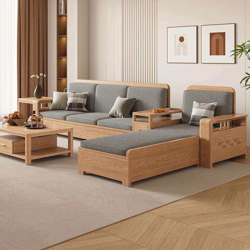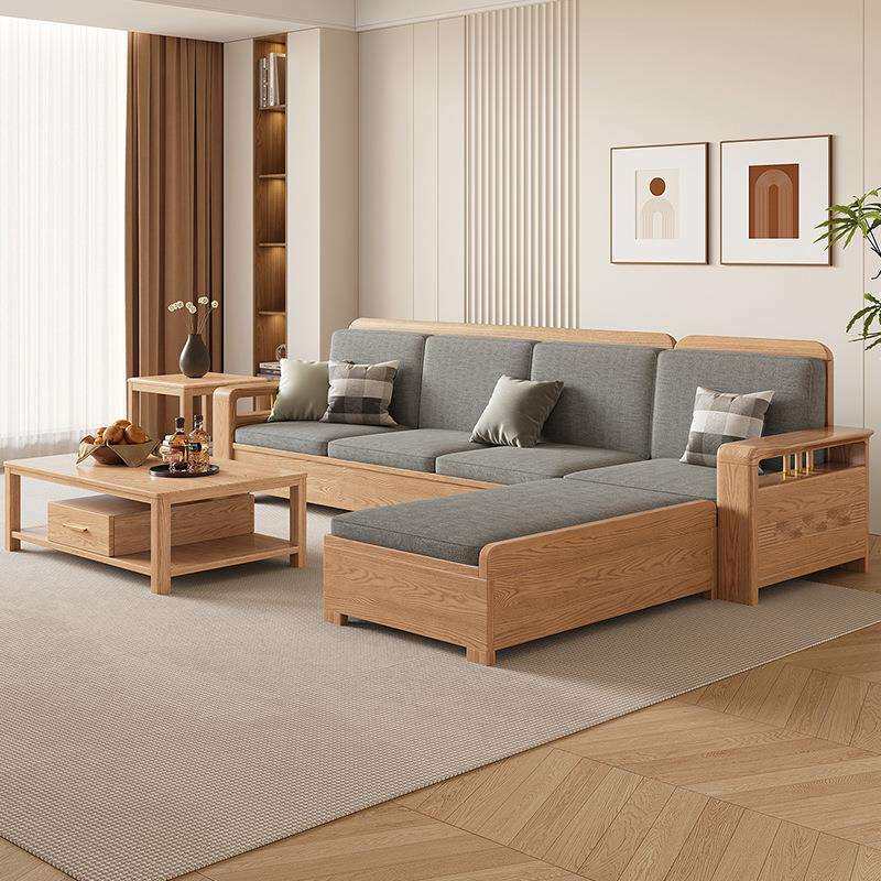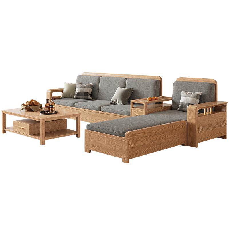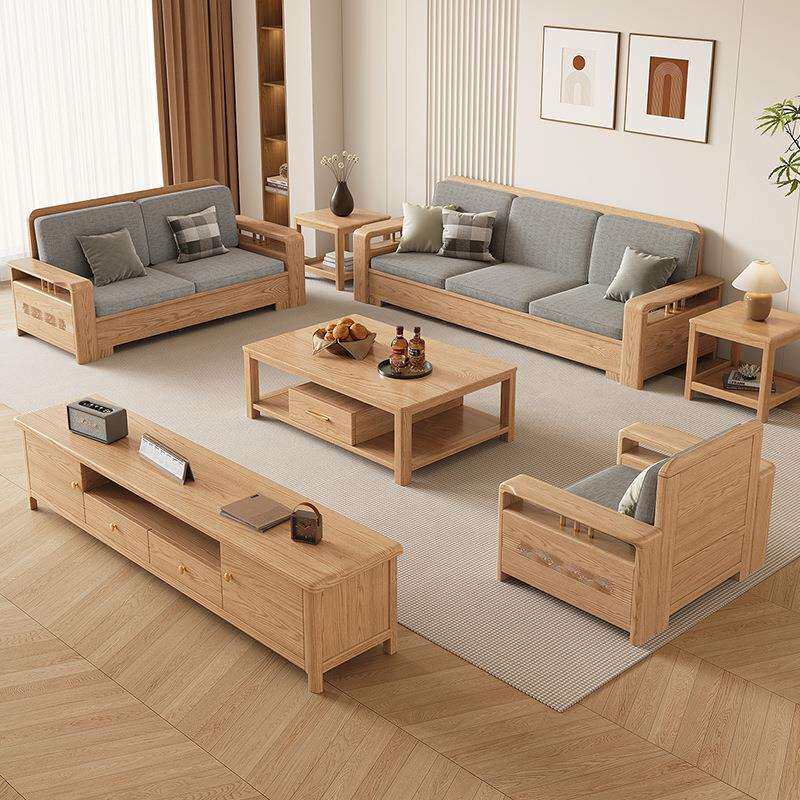 北欧白蜡木实木沙发组合布艺沙发现代简约大小户型客厅原木色家具