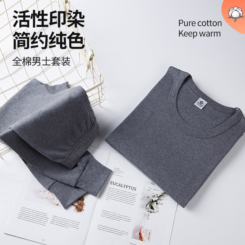 纯棉秋衣秋裤男士保暖内衣套装全棉中老年棉毛衫中圆领打底内衣男