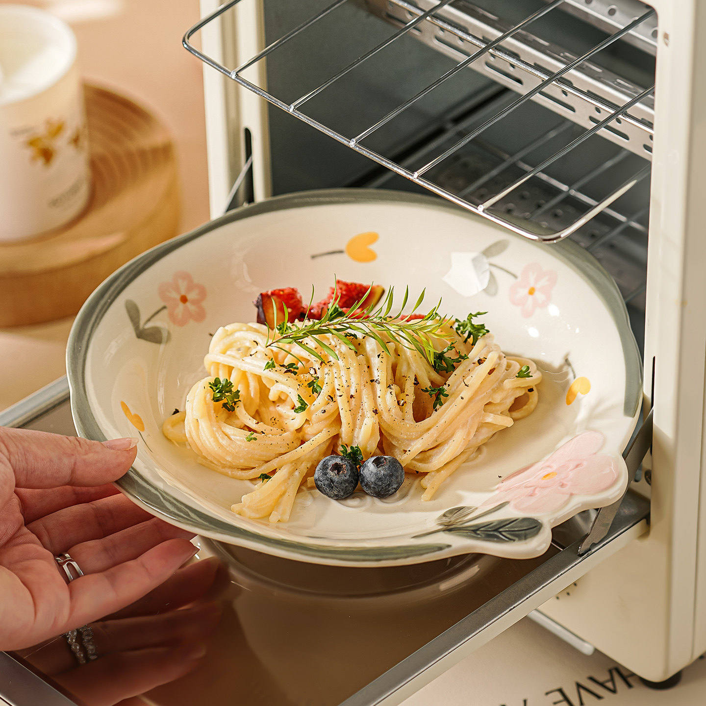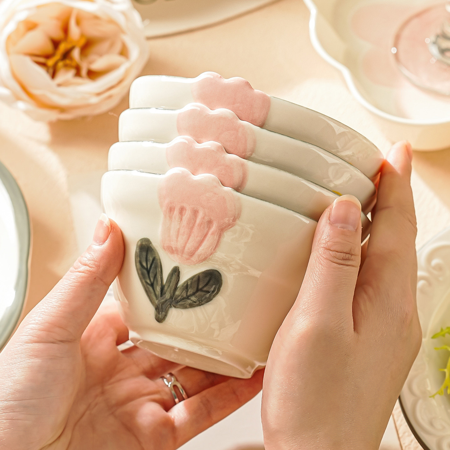 奶油风陶瓷碗家用卡通菜盘子可爱米饭碗汤碗釉下彩儿童餐具耐高温
