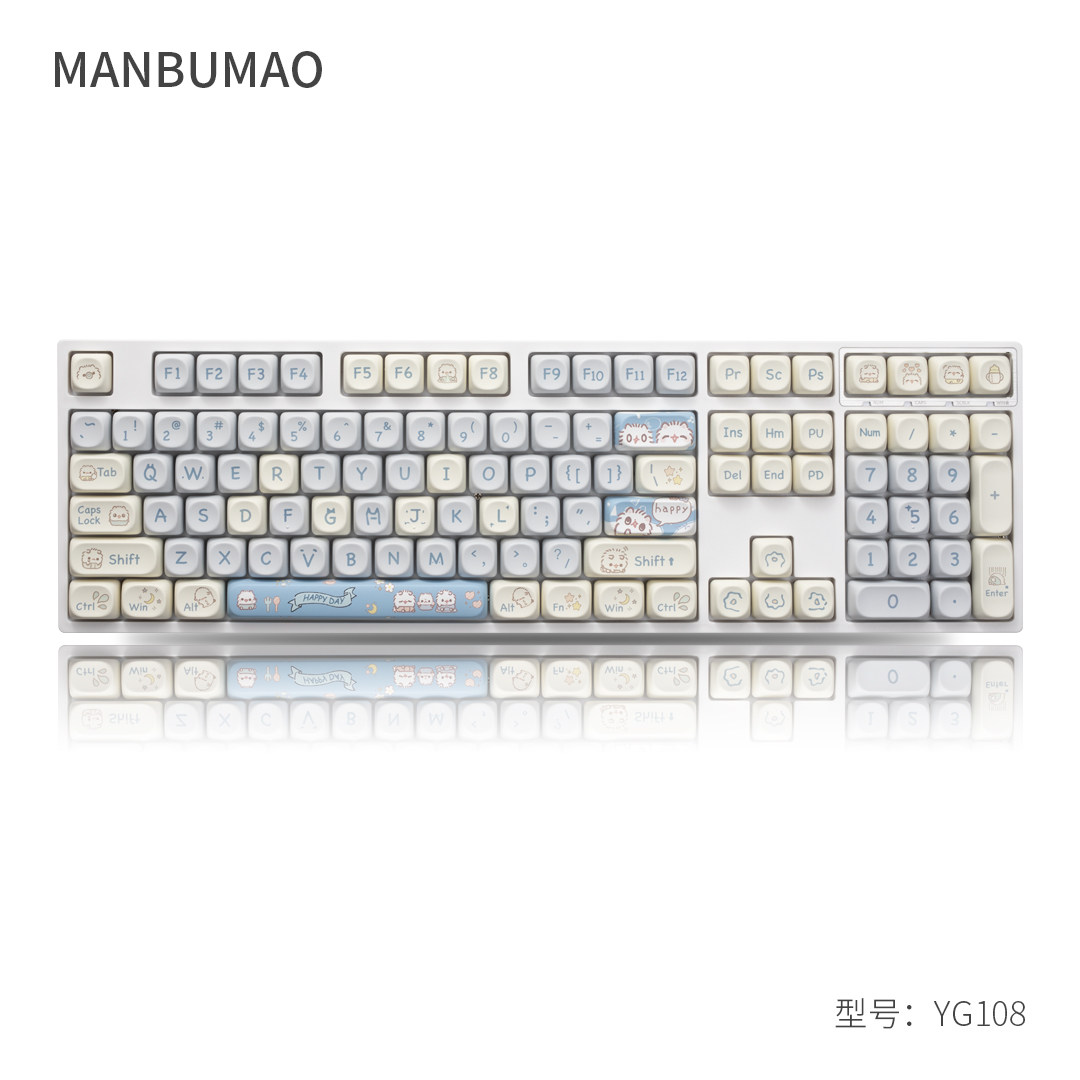 漫步猫YG108三模无线蓝牙有线机械键盘女生办公静音麻将音可爱RGB