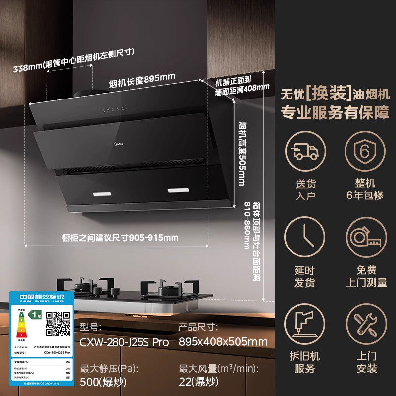 美的抽油烟机家用厨房大吸力侧吸自清洁免拆洗挥手智控J25S PRO