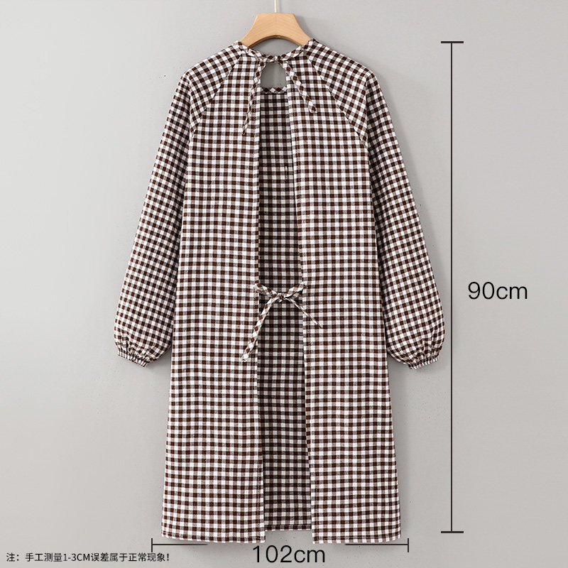 2026日本新款棉麻长袖围裙家用厨房透气罩衣女耐磨防污做饭工作服