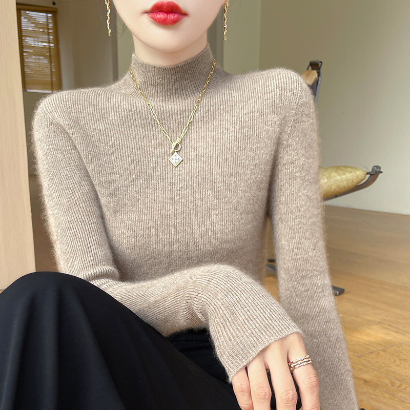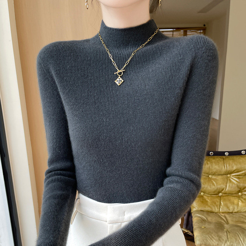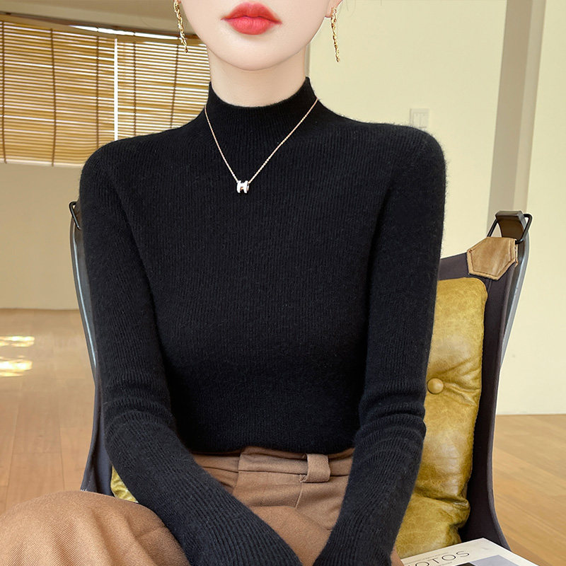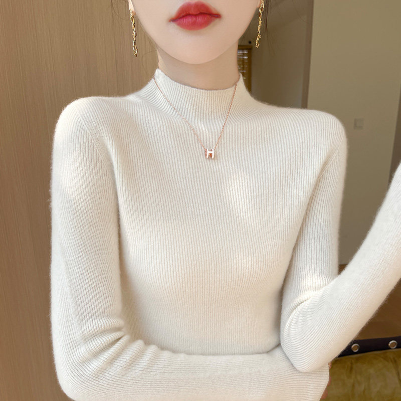 针织半高领打底衫女毛衣加厚秋冬新内搭修身仿羊毛衫白色黑色无缝