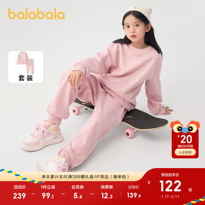 巴拉巴拉童装儿童长袖套装秋冬2025男童女童两件套加绒加厚中大童