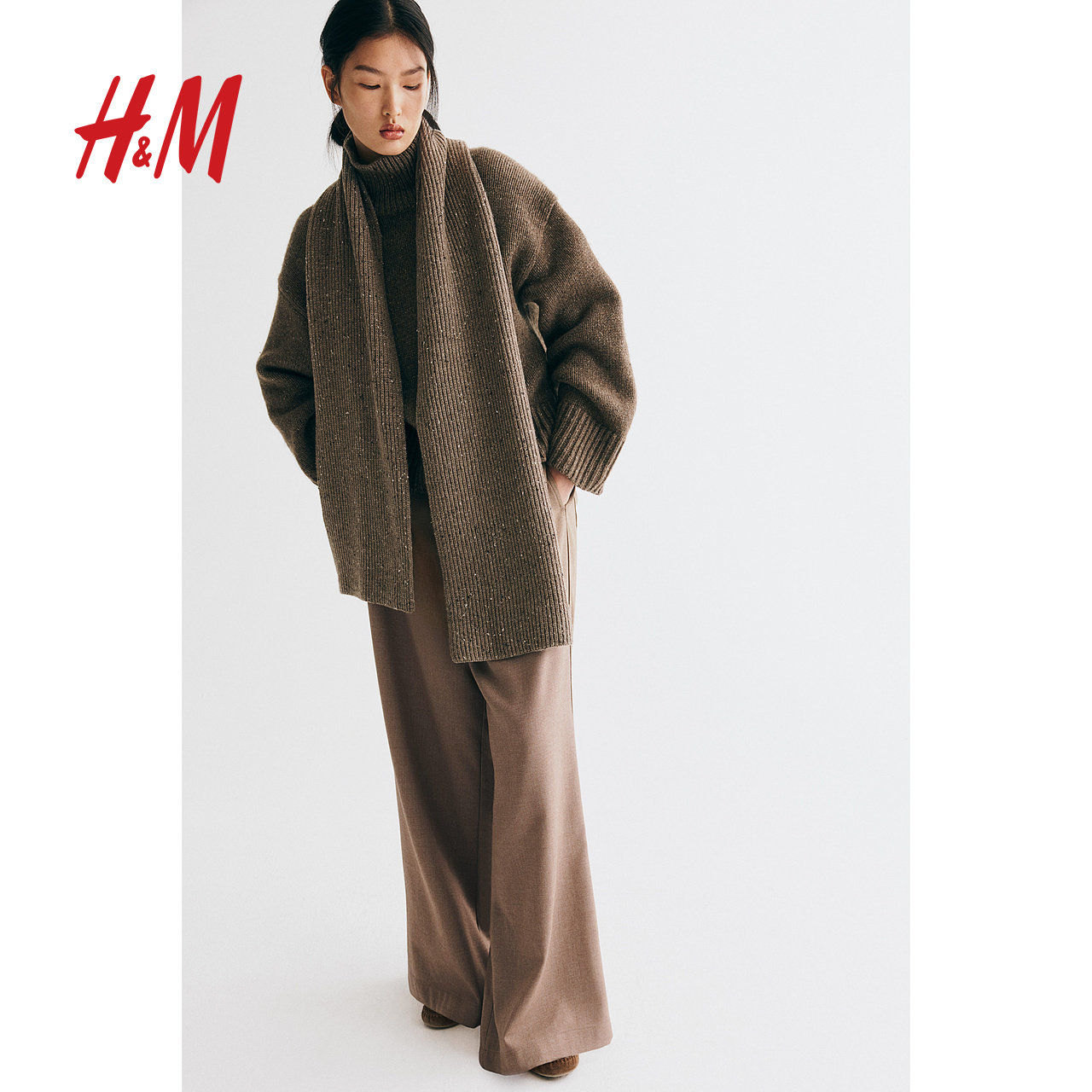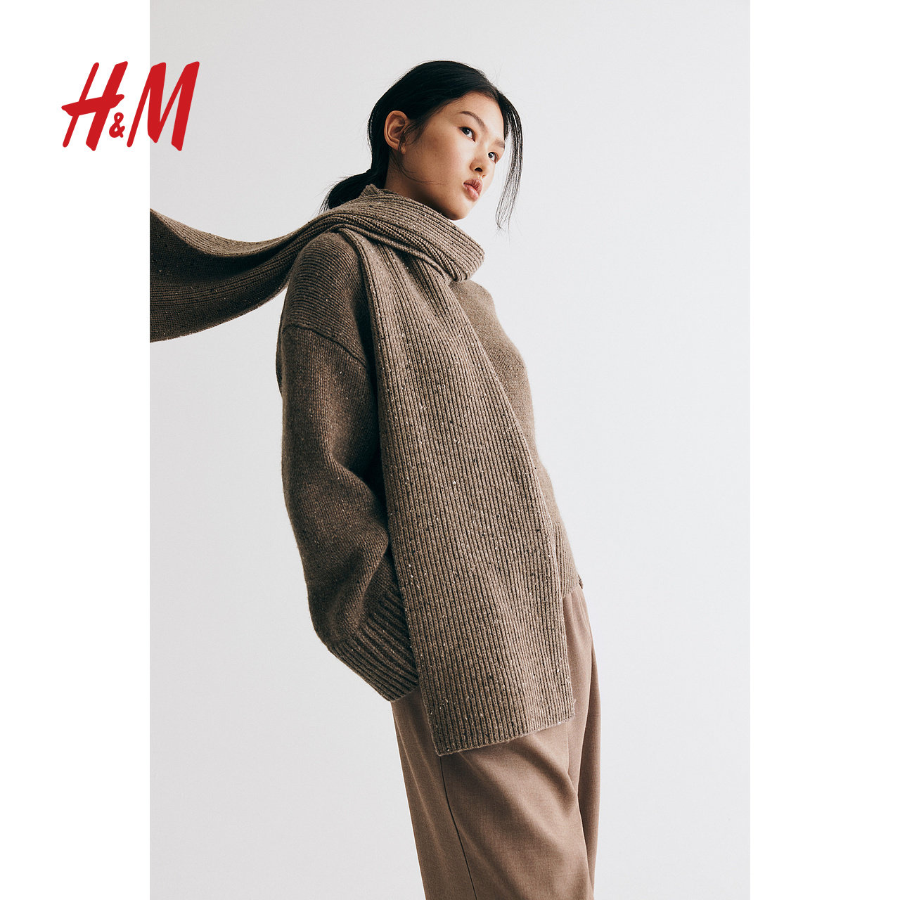 HM女士围巾春季保暖设计感罗纹针织围巾1249205