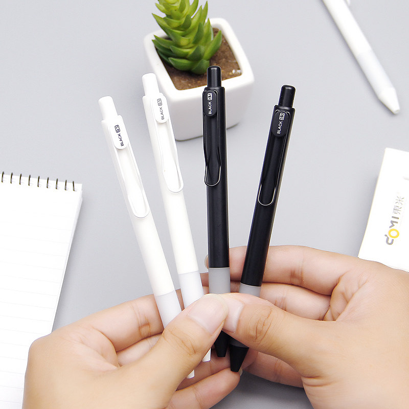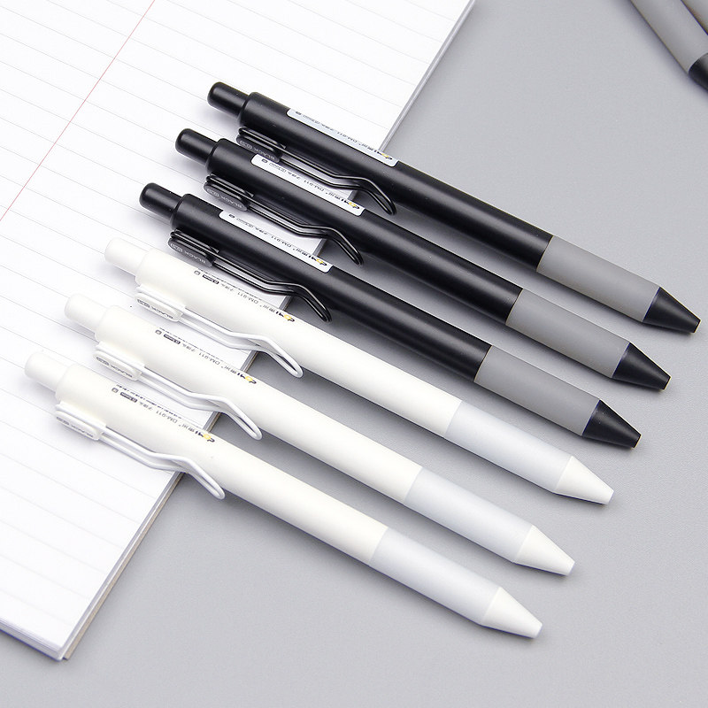 东米按动中性笔学生考试用0.5黑色水笔简约日韩小清新办公用签字笔按压式子弹头黑蓝红色笔文具用品笔DM-911