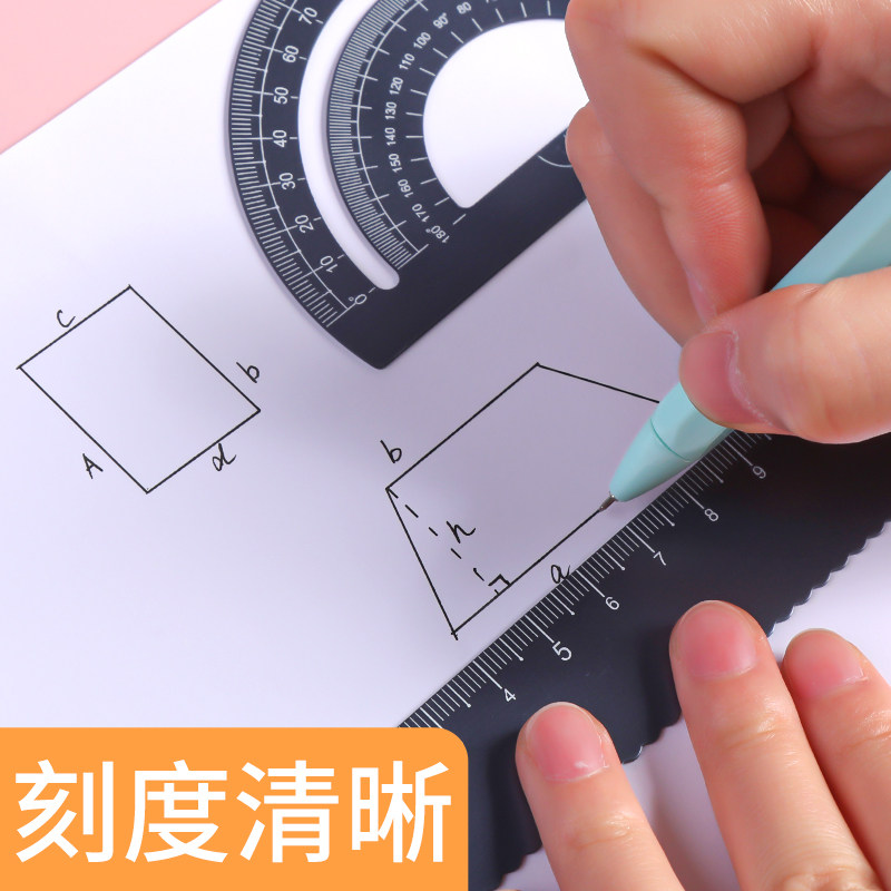 晨光金属尺子套装小学生用铝合金直尺三角尺带波浪线量角器儿童多功能套尺日韩可爱用品三角板网红文具用品
