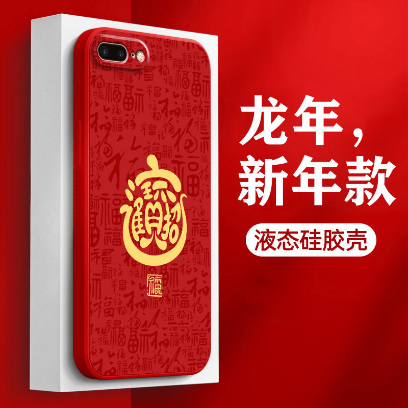 招财进宝适用于苹果xsmax手机壳xs中国风文字XR液态硅胶se2镜头全包iPhone8plus防摔7p新年红6s本命年X保护套