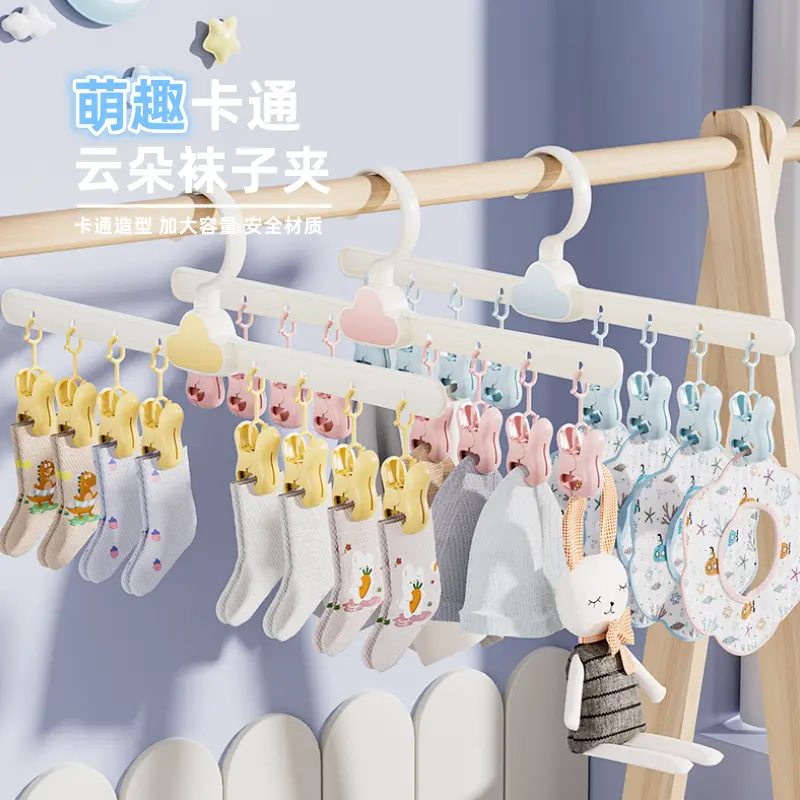 婴儿夹袜子晾晒架可折叠婴儿晒袜子内裤多夹子晾衣架折叠衣柜