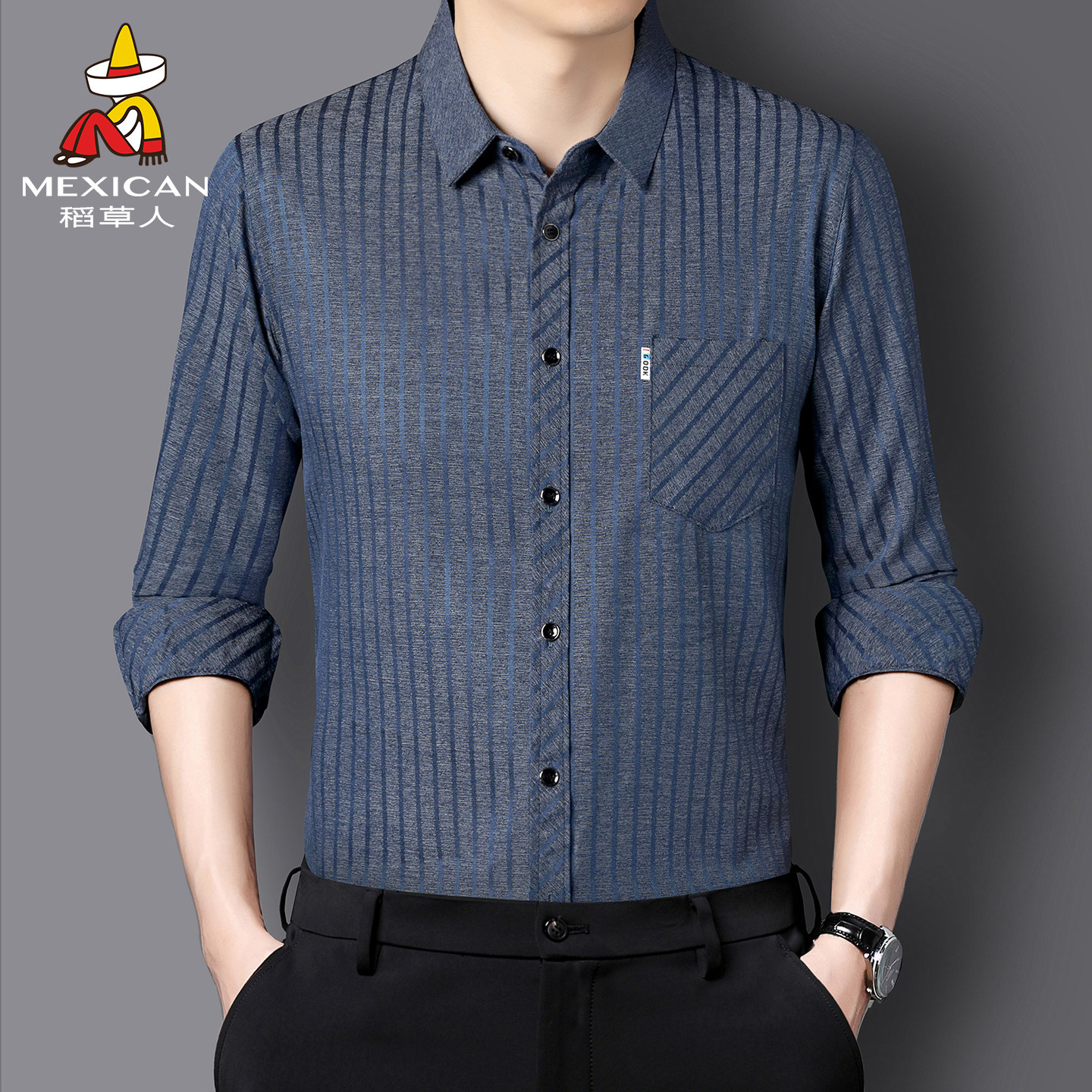 王安宇同款森马长袖衬衫男纯棉2025春秋新款通勤休闲上衣商务衬衣