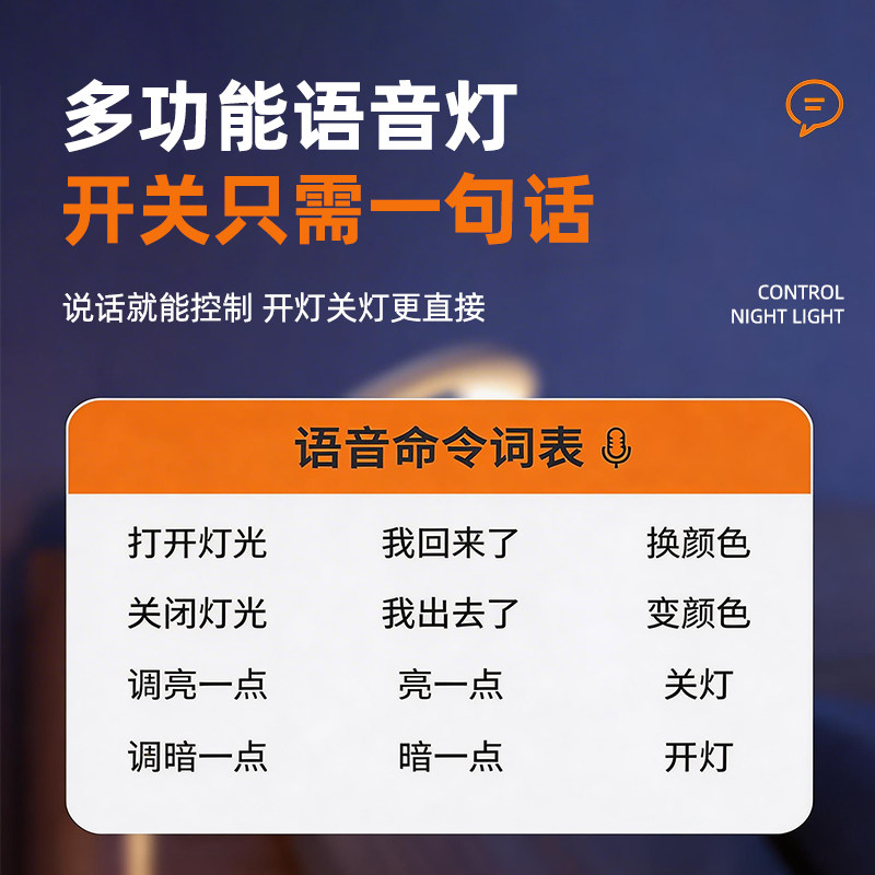 人工智能语音控制创意小夜灯USB语音声控LED护眼灯家用卧室床头灯
