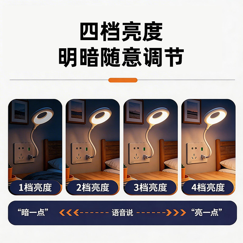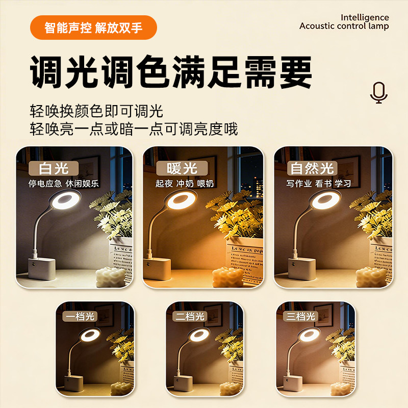 声控智能小夜灯AI语音人工感应卧室睡眠家用USB台灯伴床头灯控制