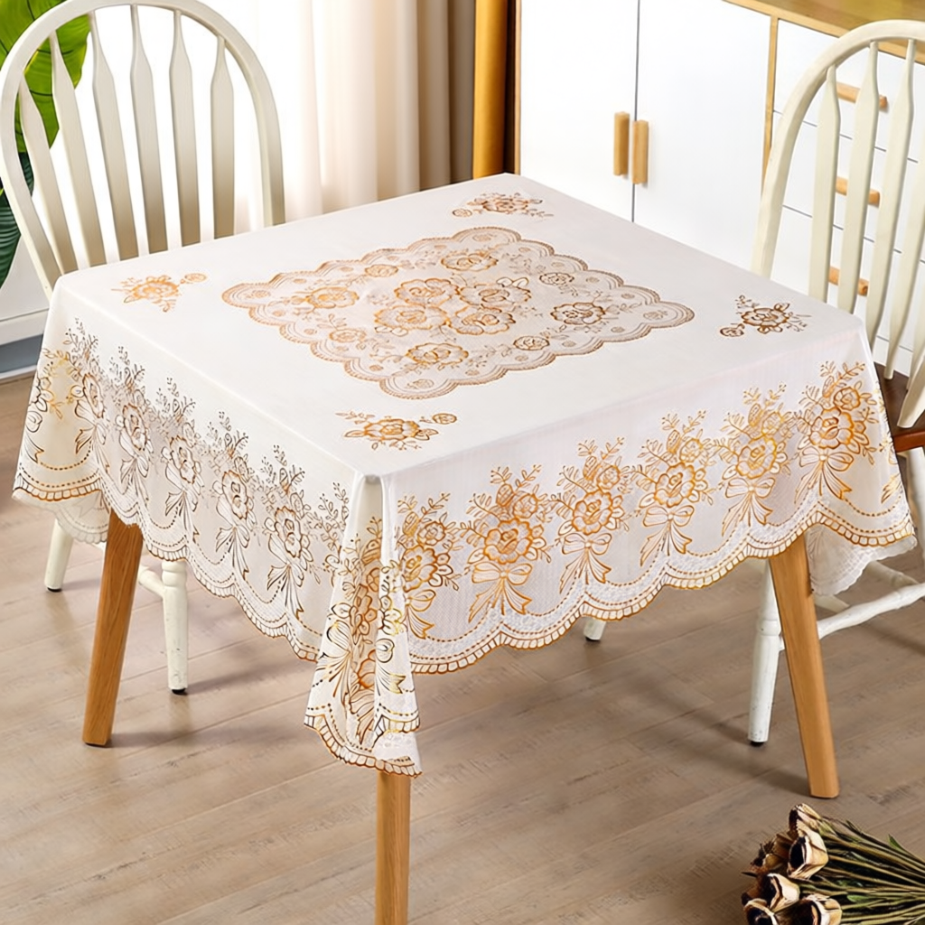 桌布防水防油免洗防烫长方形餐桌布茶几垫塑料台布套客厅烫金桌布