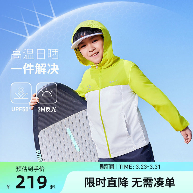 Nike 3brand儿童防晒衣男童凉感外套皮肤衣夏季女童大童遮阳风衣