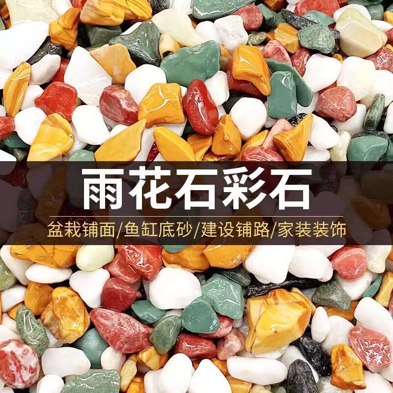 彩石雨花石鱼缸装饰造景底部砂石头火山石溪流石子原石天然石花盆