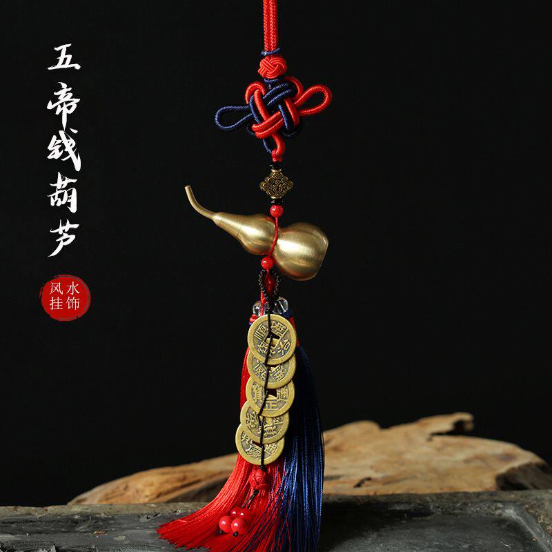 纯铜葫芦五帝钱车挂 黄铜铜钱葫芦汽车车载挂件摆件挂饰