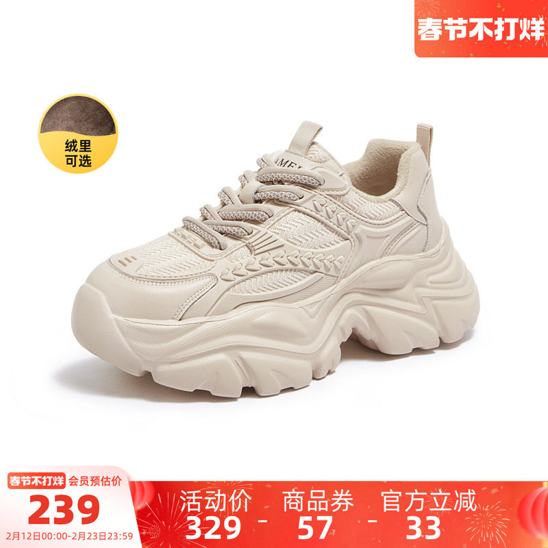 骆驼老爹鞋女鞋2025秋季新款透气运动鞋女款复古加绒厚底休闲鞋子
