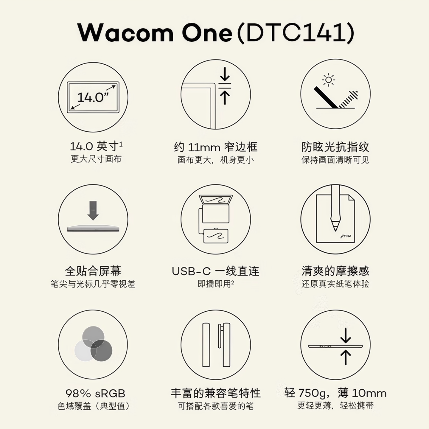 Wacom数位屏DTC141手绘屏14英寸全贴合绘画屏数位板绘图屏手绘板