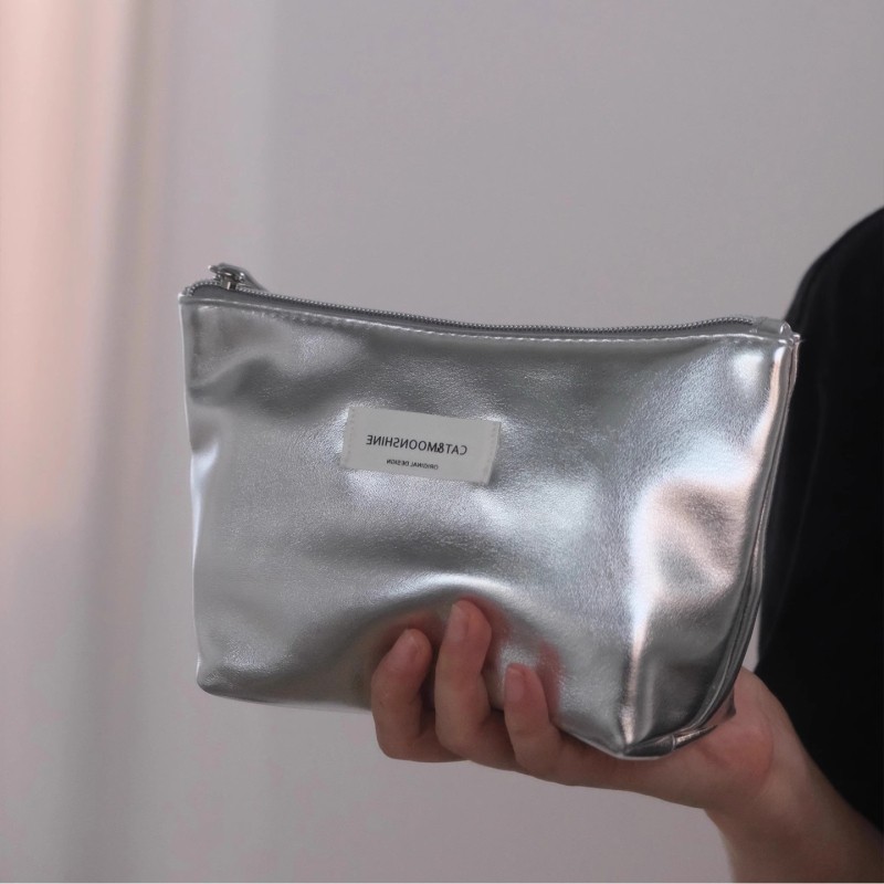 洋气小众高级感银色化妆包收纳包大容量便携洗漱包整理袋内胆小包