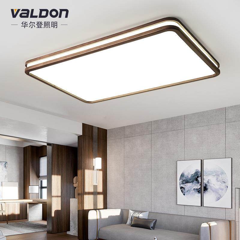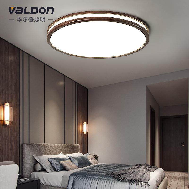 新中式客厅吸顶灯超薄极简房间卧室灯胡桃木色大气家用客厅灯大灯