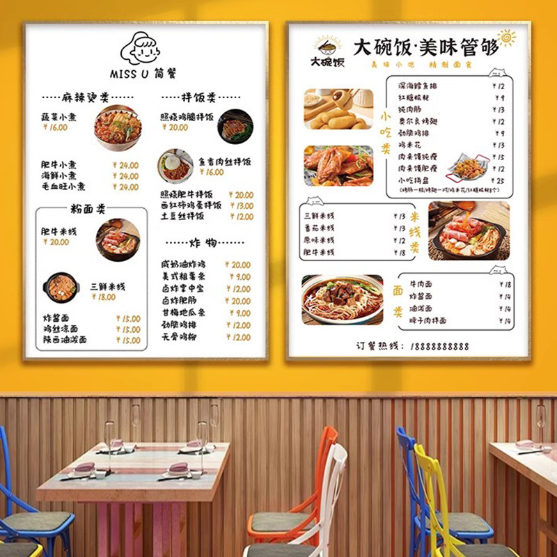 餐饮店菜单价目表设计制作挂墙饭店价格表展示牌定制广告墙贴定制小吃早餐烧烤店火锅奶茶店点餐牌贴纸订做
