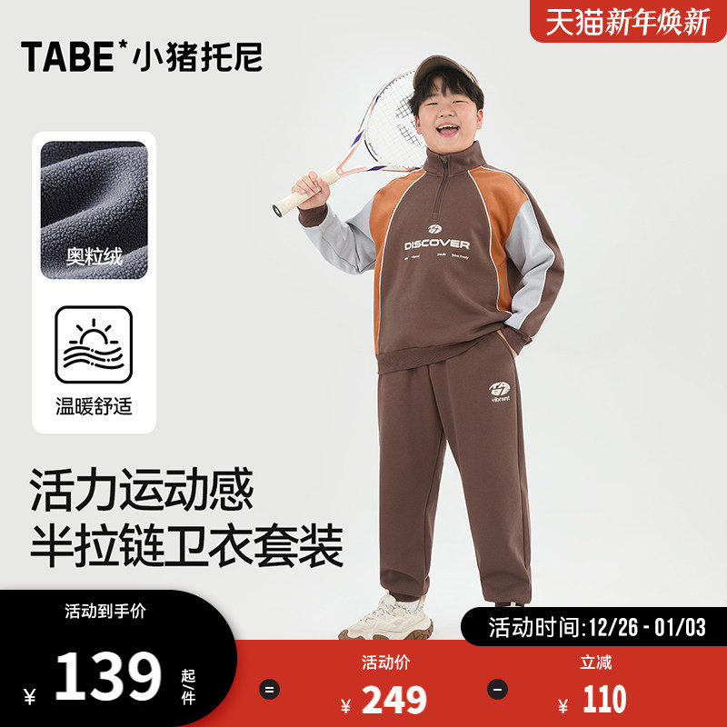 【半拉链运动套装】小猪托尼男童卫衣套装中大童加绒加厚秋冬款