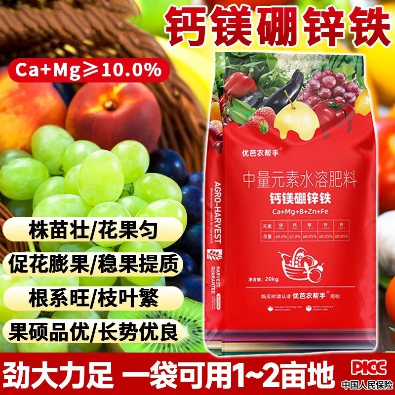 钙镁硼锌铁瓜果蔬菜花卉提质绿叶促花促果袋装中量元素水溶肥料