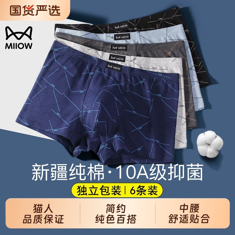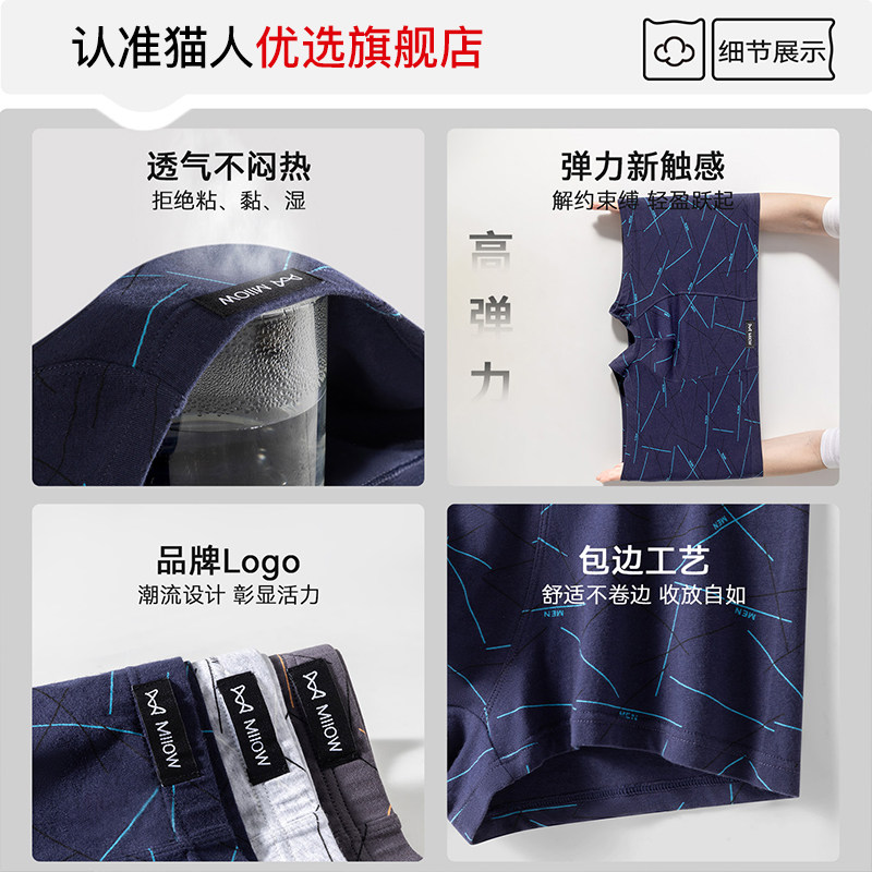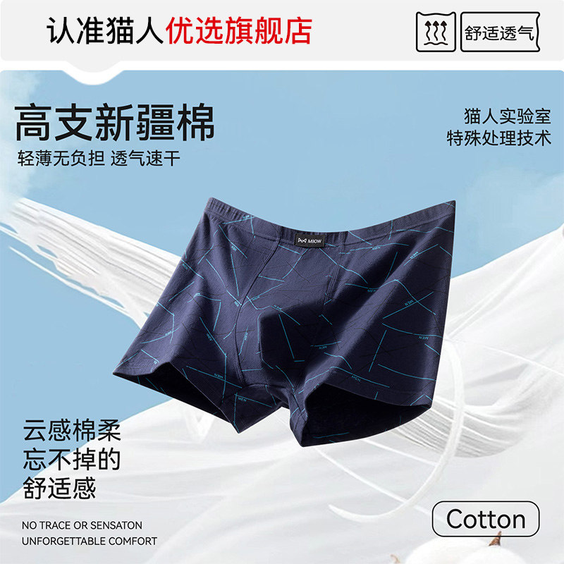 猫人名牌棉款内裤男士2025新款平角抗菌四角短裤男款式青少年裤衩
